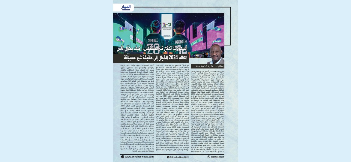 تهانينا للمملكة العربية السعودية على فوزها الكبير باستضافة كأس العالم 2034، مما يعكس قدرتها المتنامية على تنظيم الأحداث العالمية الكبرى. يأتي هذا الإنجاز بعد النجاح الباهر لدولة قطر في استضافة كأس العالم 2022، مما يضع المنطقة العربية مجددًا في دائرة الضوء كقوة رياضية عالمية. إضافةً إلى ذلك، فإن استضافة المغرب لكأس العالم 2030، بالشراكة مع البرتغال وإسبانيا، يعزز من مكانة المنطقة كقوة رياضية عالمية متكاملة، ويدعم دورها في تعزيز التعاون والشراكة بين دول العالم في مجال الرياضة.