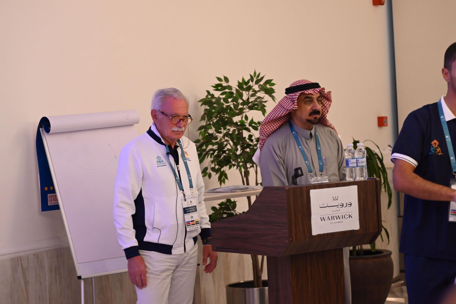 من جهة اخرى ومن خلال المؤتمر الصحفي الذي عقد عصر الجمعة ١٣-١٢-٢٠٢٤م تم تعريف العدائين و العداءات والمشاركين بمسارات السباق الخمسة كيلو متر والواحد وعشرين كيلو متر والنقاط والتحقق من التعريف بالهوية بالمستند لمطابقته مع البيان الدولي   وشرح الخطة الاسعافية والسلامة الامنة وكل مايهم السباق من البداية حتى النهاية من قبل أعضاء الاتحاد الدولي واللجنة الفنية كما تم استعراض كافة التعليمات والانظمة الدولية واهمية الالتزام بالشروط على الطريق والسباقات الدولية الدولية التي مطلوبة في السباق حيث تم عرضها للعدائين والعداءات  وتم أفهامهم باللغة الانجليزية وبالترجمة لهم مباشرة.