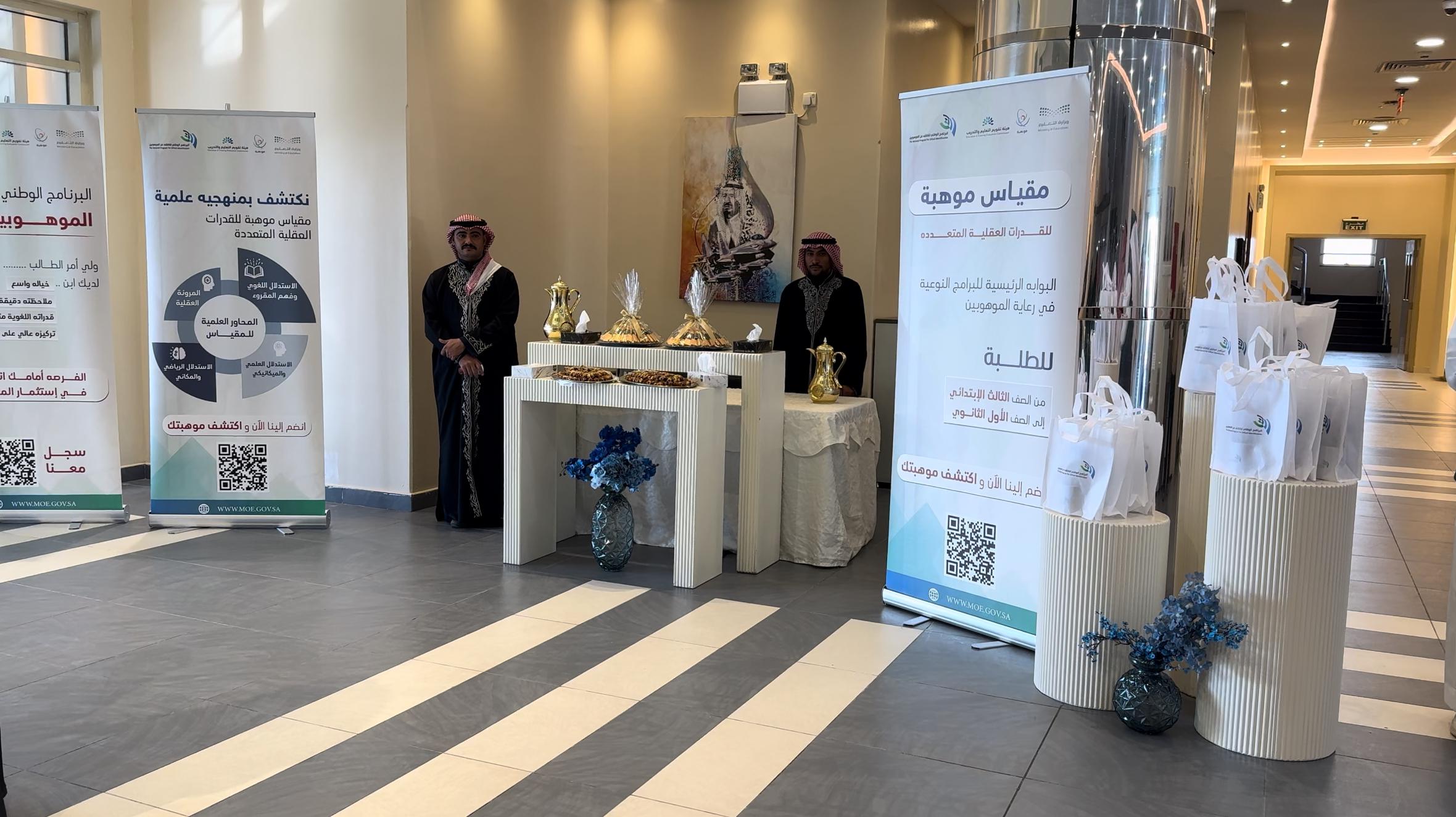 وذلك في إطار تقديم الرسائل التوعوية والتثقيفية عن آلية التسجيل بالبرنامج الوطني للكشف عن الموهوبين من خلال مقياس موهبة للقدرات العقلية المتعددة في مجالات اللغة والرياضيات والعلوم وبعض جوانب الإبداع فضلا ً عن العمل على بناء قاعدة بيانات شاملة ومفصلة للطلبة الموهوبين في المملكة .
