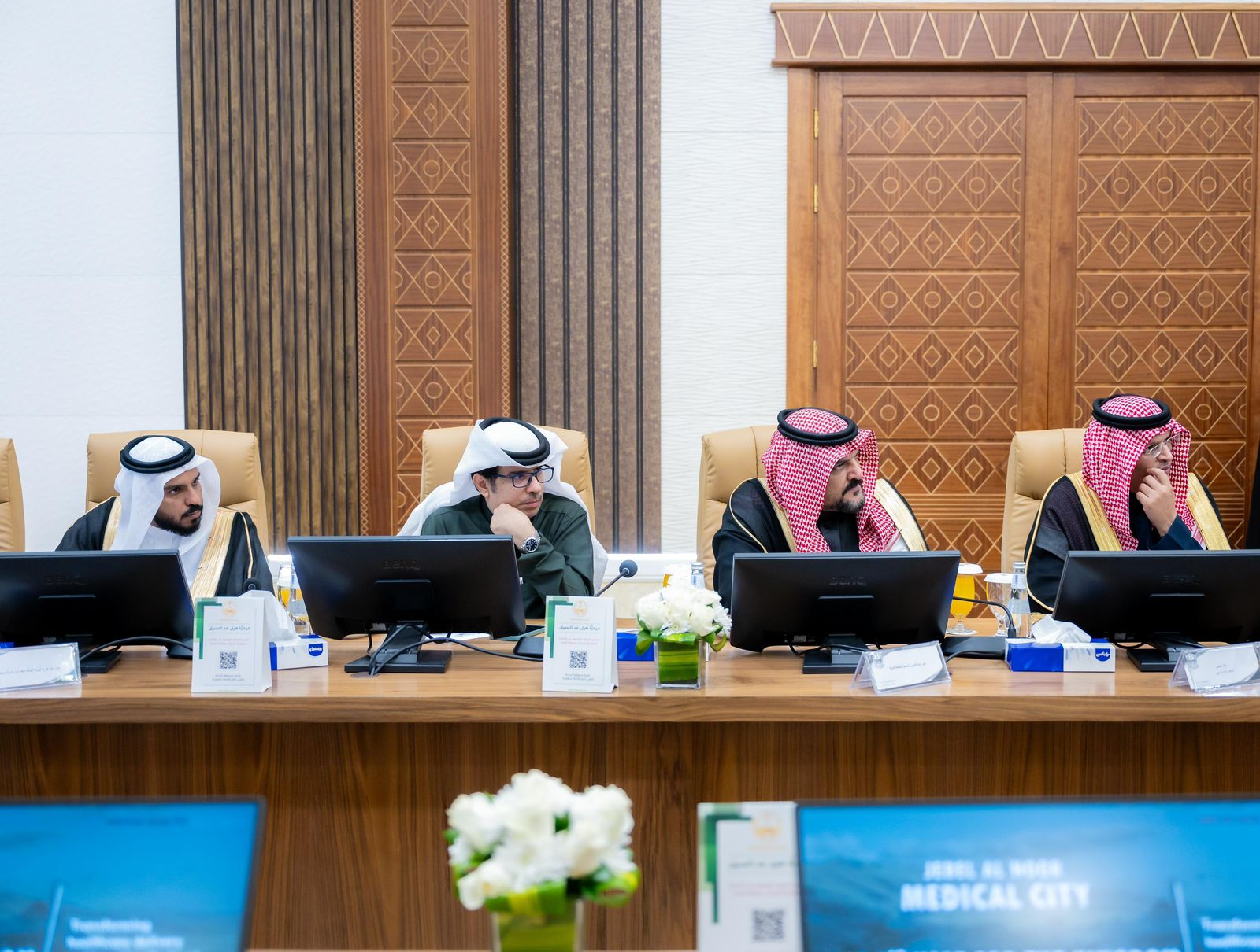 ناقش صاحب السمو الملكي الأمير الدكتور حسام بن سعود بن عبدالعزيز أمير منطقة الباحة رئيس اللجنة الإشرافية للمكتب الإستراتيجي لتطوير المنطقة، مشروع "جبل النور المدينة الطبية الجامعية"، وذلك خلال اجتماع سموه، مع معالي الدكتور نايف الحجرف وفريق عمله من شركة فيرتس هيلث بارتنرز المالكة لمشروع «جبل النور المدينة الطبية الجامعية»، بحضور فريق من وزارة الاستثمار يترأسهم مساعد وكيل وزارة الاستثمار لقطاع الصحة الدكتور مبارك الملحم، وأعضاء اللجنة العليا بالمنطقة المكونة من قيادات الجهات الحكومية بالمنطقة، وذلك بقاعة الاجتماعات بمكتب سموه.