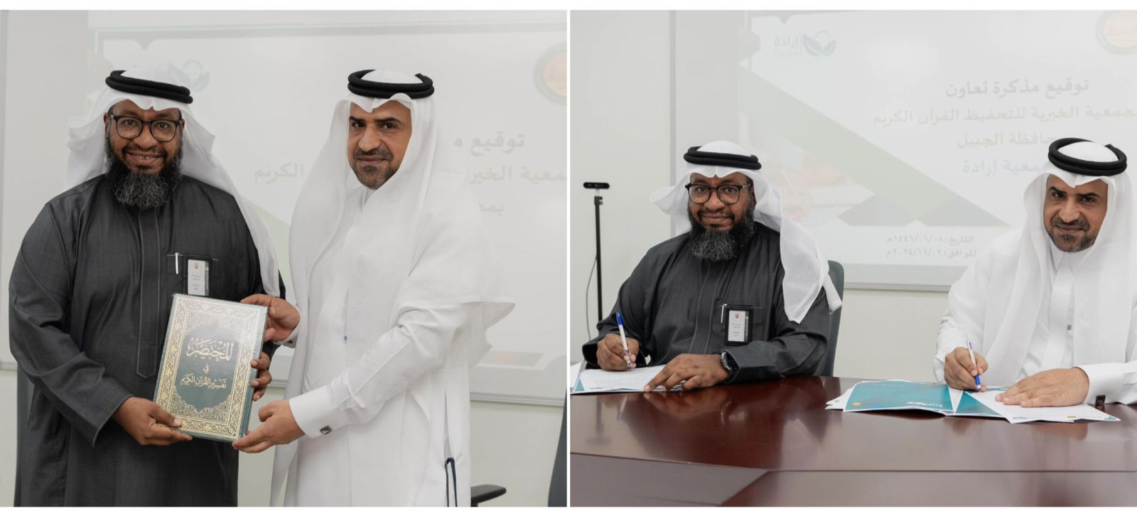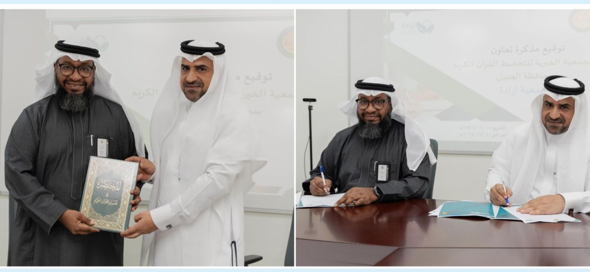 وقع مدير الشؤون الإدارية والموارد البشرية بجمعية إرادة أ. أحمد الزهراني والمدير التنفيذي للجمعية الخيرية لتحفيظ القرآن الكريم بالجبيل أ. هاني عمير مذكرة تعاون بين الجمعيتين؛ لتبادل الخبرات وتعزيز مفهوم الشراكة المجتمعية بين الطرفين.