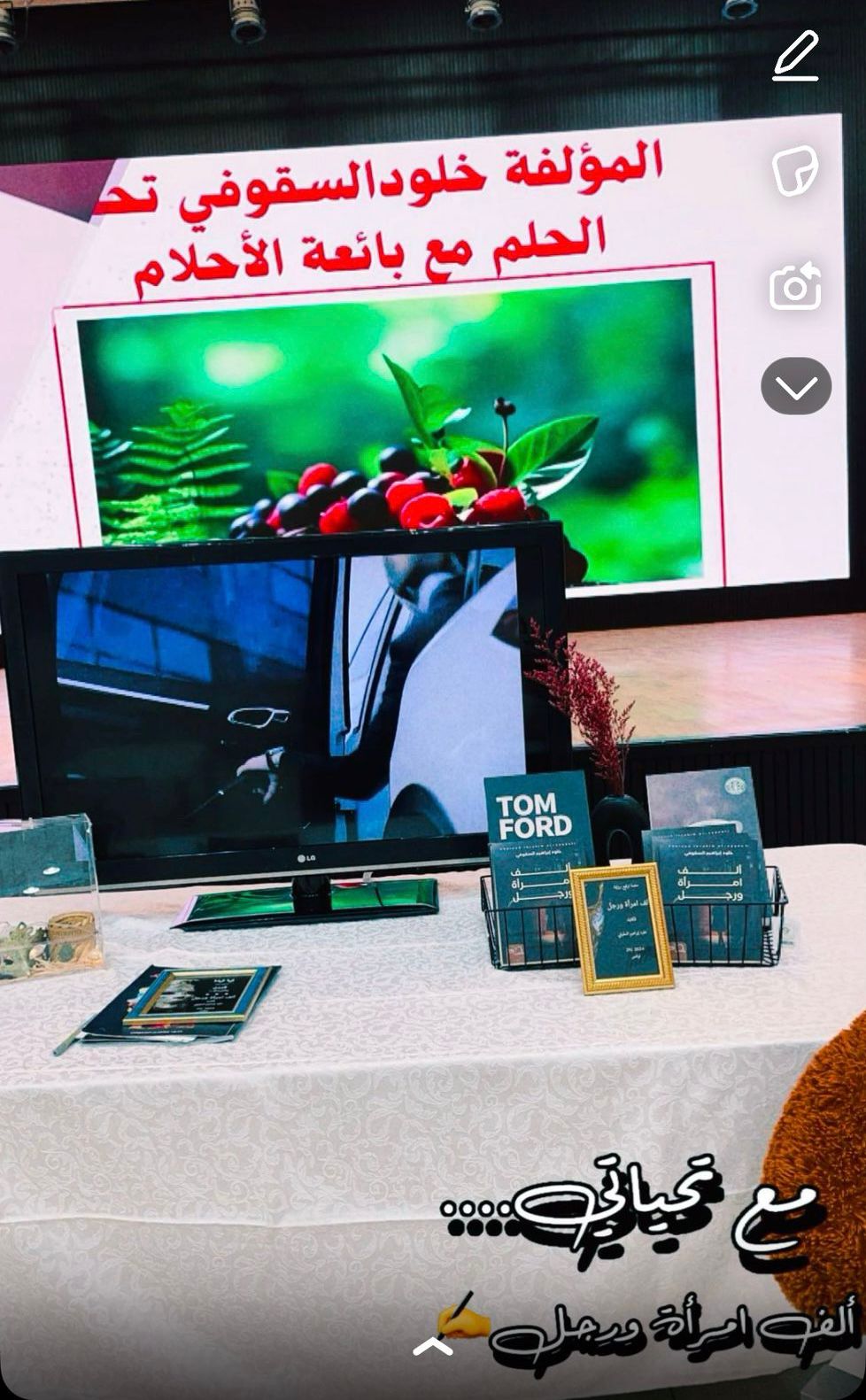 وقعت الكاتبة خلود إبراهيم السقوفي مؤلفاتها " بائعة الأحلام وألف امرأة ورجل" أمس الثلاثاء ١٦-٦-١٤٤٦هـ الموافق ١٧-١٢-٢٠٢٤م في مدارس الكفاح الأهلية بالأحساء.