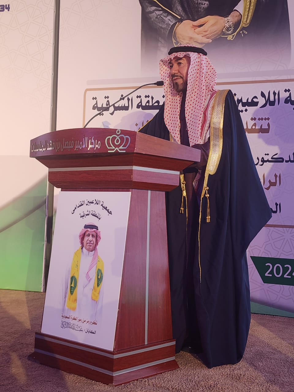 وفي كلمة لراعي الحفل المهندس عبدالله السيهاني هنأ في فيها خادم الحرمين الشريفين الملك سلمان بن عبدالعزيز آل سعود وصاحب السمو الملكي الأمير محمد بن سلمان بن عبدالعزيز ولي العهد على إستضافة المملكة لنهائيات كأس العالم لكرة القدم ٢٠٣٤ .