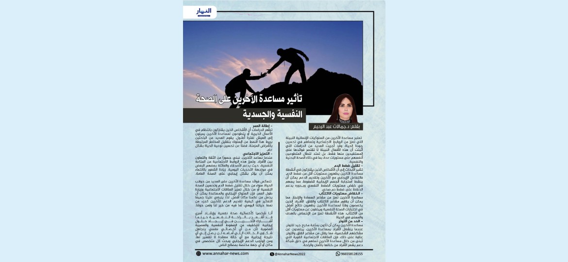 تنعكس فوائد مساعدة الآخرين على العديد من جوانب الحياة. سواء من خلال تقليل ضغط الدم وتحسين الصحة النفسية أو من خلال تعزيز العلاقات الاجتماعية وزيادة طول العمر، فإن السلوك الإيجابي والمساعدة يمكن أن يجعل من عالمنا مكانًا أفضل. لذا، ينبغي علينا جميعًا التفكير في كيفية تقديم الدعم للآخرين كجزء من نمط حياتنا اليومي، لما فيه من خير لنا ولمن حولنا.