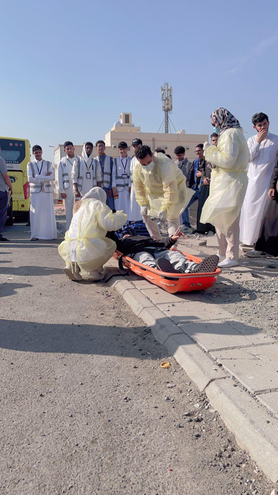 وأضاف الشهري أن الفرضية الأولى تناولت وجود حريق في الدور الثالث بمستشفى الملك فهد وتم الإعلان عن بلاغ طبي أحمر، حيث يبلغ عدد المنومين بالدور 50 حالة وجاري تقييم الوضع و الإخلاء من قبل المنشأة و الدفاع المدني و وجود حالات مصابة ما بين إصابات خطيرة و متوسطة وخفيفة، في حين تمثلت الفرضية الثانية في وجود افتراض انفجار ( بشري٤ ) في شركة أرامكو ووجود ٥ إصابات، وتم توجيه فرقة طبية وقيادة ميدانية من مركز ادارة الأزمات والكوارث بفرع وزارة الصحة بجدة للتعامل مع الحالات وتقييم الوضع والنقل في حال الحاجة، وتناولت الفرضية الثالثة وجود حالات إحتجاز ووجود ١٦ حالة محتجزة ١٥ منها حالات خفيفة تم التعامل معها بالموقع و حالة خطيرة واحدة تم نقلها لمستشفى الملك عبدالعزيز بجدة.