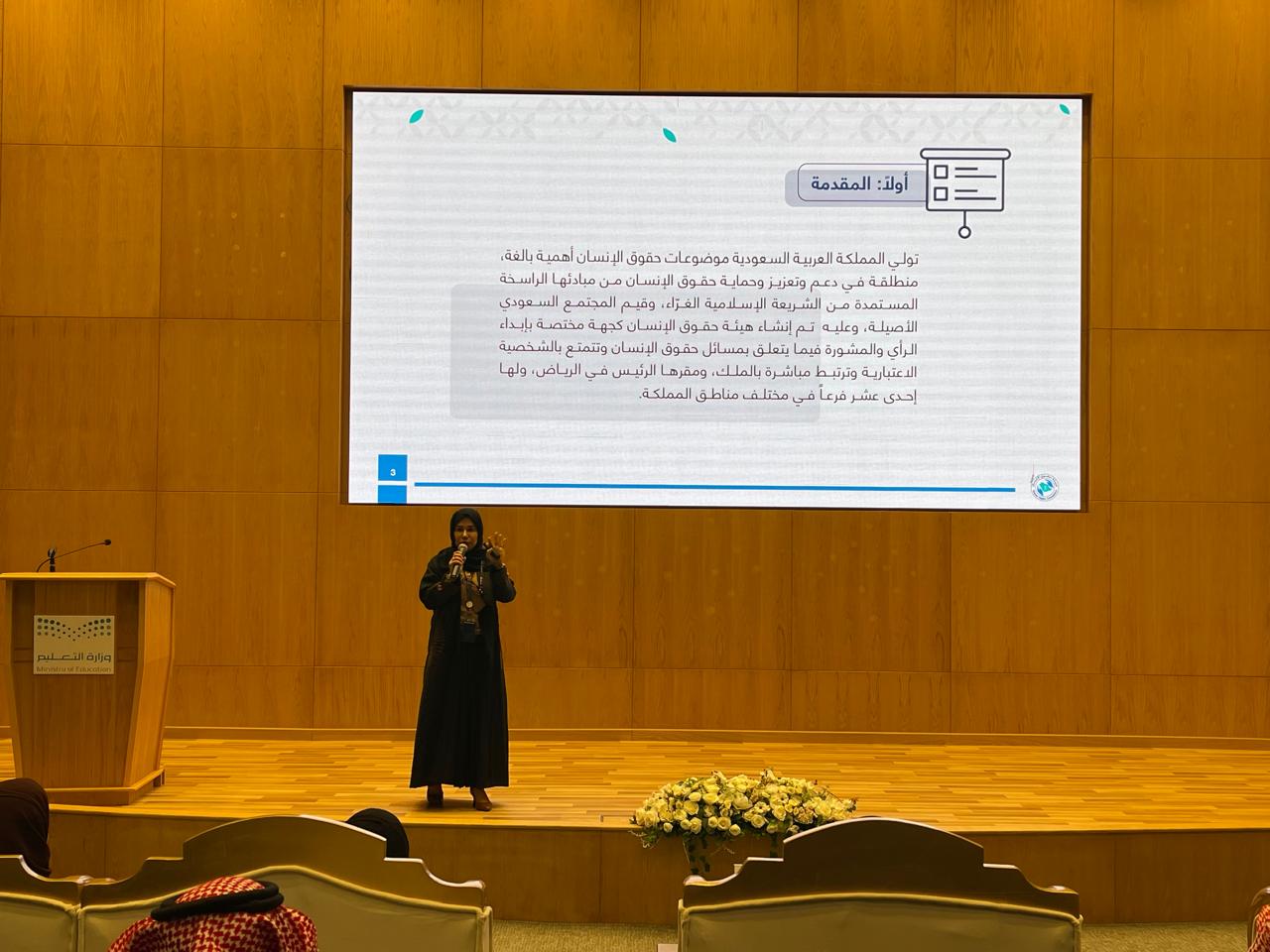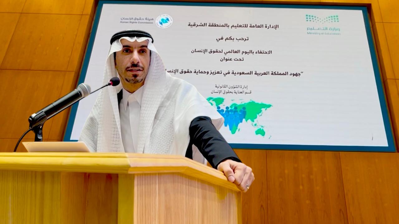 نظمت الإدارة العامة للتعليم بالمنطقة الشرقية صباح اليوم الخميس ممثلة في "إدارة الشؤون القانونية" وبالتعاون مع فرع هيئة حقوق الإنسان بالمنطقة الشرقية محاضرة بعنوان "جهود المملكة العربية السعودية في تعزيز وحماية حقوق الإنسان"، جاء ذلك برعاية مدير عام تعليم المنطقة وبحضور المساعد للشؤون التعليمية فاطمة البلوي، ومدير عام فرع هيئة حقوق الإنسان بالشرقية نوال البواردي، ومديرة البرامج بالهيئة جميلة السفياني، ومستشار الشؤون القانونية بتعليم المنطقة سعيد القحطاني، وسط حضور عدد من القيادات التعليمية والإدارية والطلبة، وذلك بمسرح مبنى تعليم الشرقية الرئيسي بالدمام.
