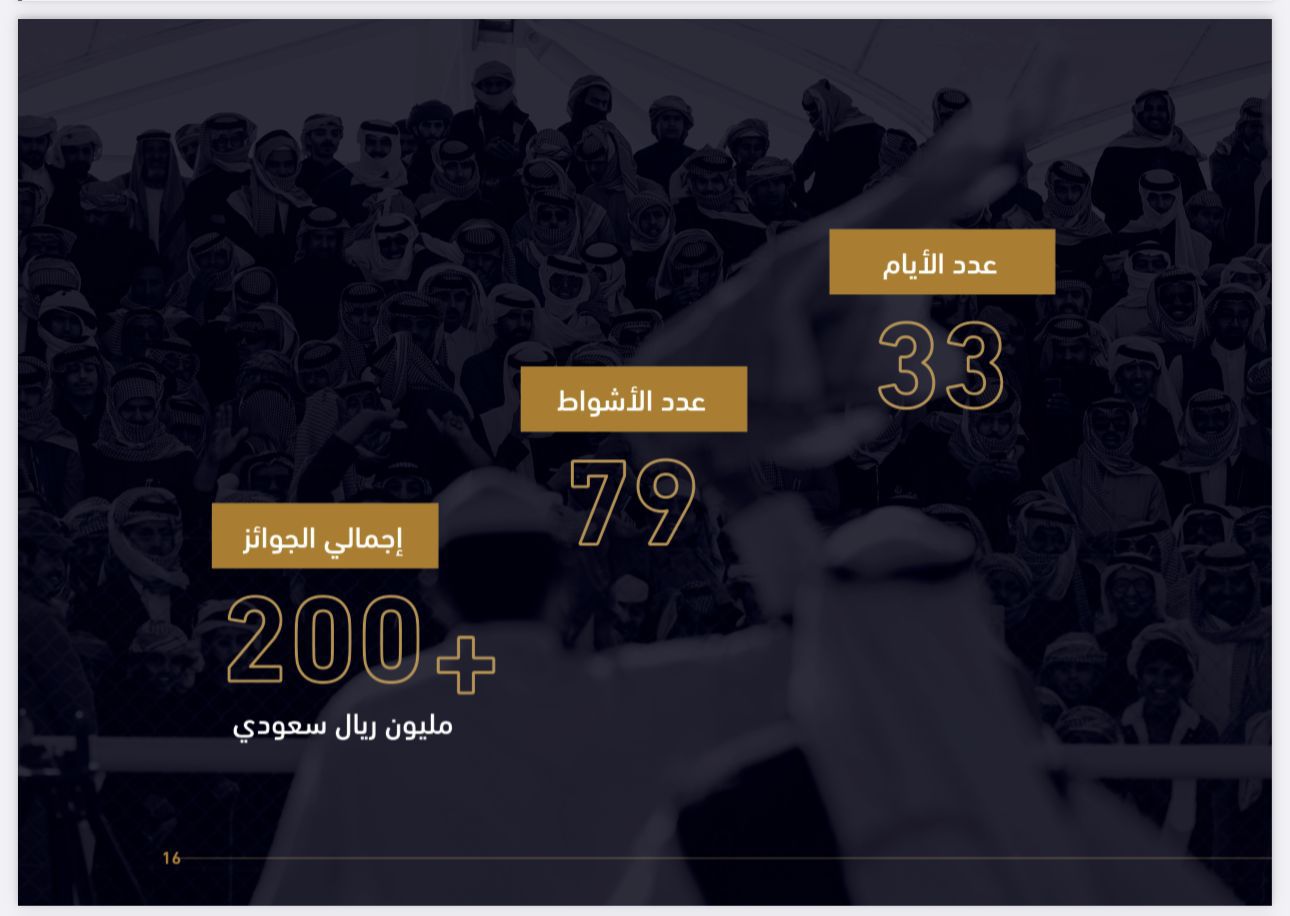 ويُعد مهرجان الملك عبدالعزيز للإبل، من أكبر المهرجانات التراثية والثقافية في المملكة، ويهدف المهرجان إلى الاحتفاء بالإبل كرمز ثقافي واقتصادي، جامعًا عشاق الهجن من داخل المملكة وخارجها في أجواء مليئة بالتحدي و الاحتفاء بالموروث، ومهرجان اقتصادي بامتياز بما يشهده من صفقات وجوائز. وتعتبر هذه النسخة أميز ختام لهذا العام الذي أسمته المملكة بعام الإبل.