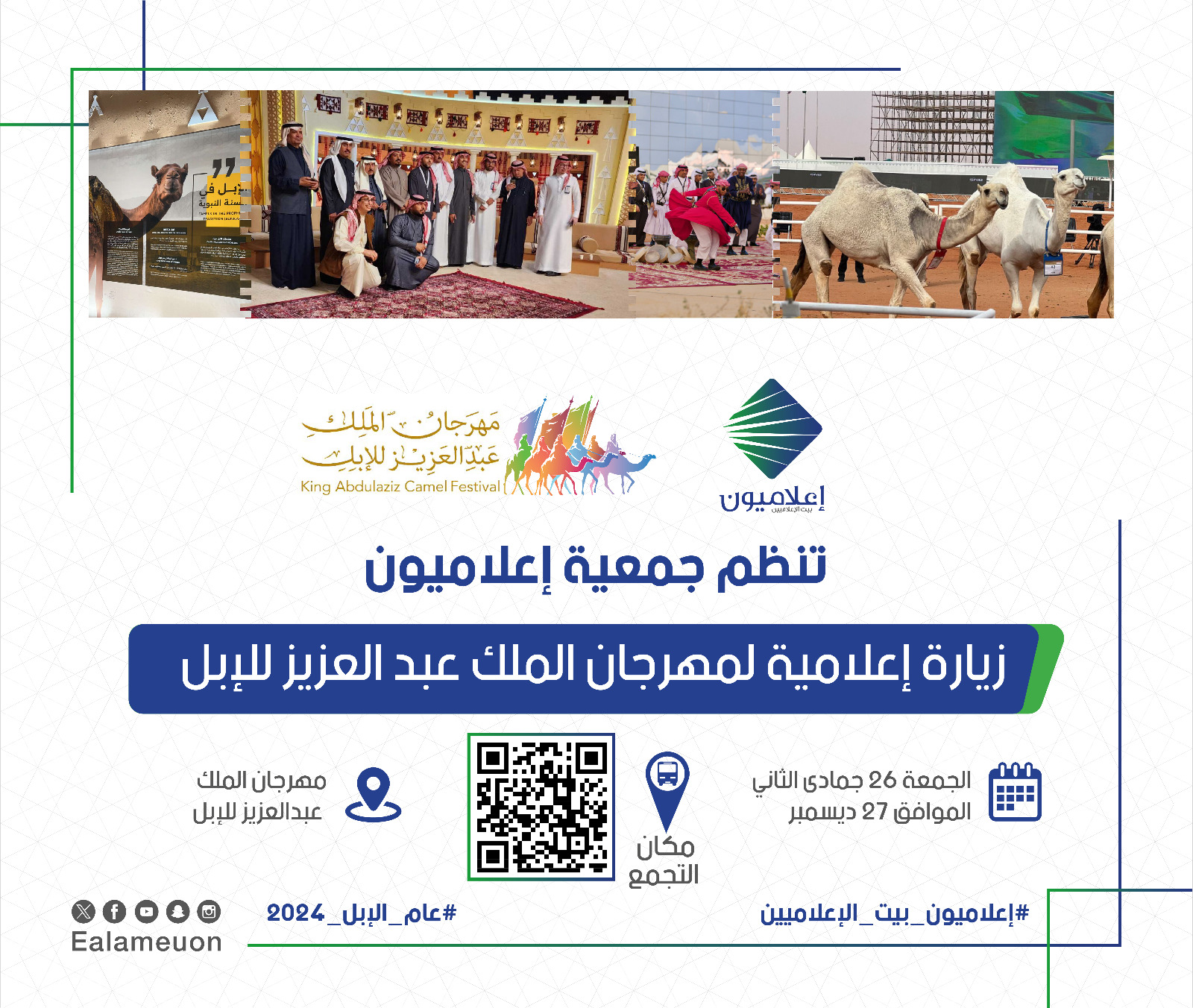 نظمت جمعية إعلاميون زيارة إعلامية لمهرجان الملك عبدالعزيز للإبل 2024، والمقام حالياً في ميدان الملك عبدالعزيز بالصياهد، تحت شعار “عز لأهلها”، حيث حضر الوفد جانب من تنافس أهل الأبل للفوز بجوائز المهرجان التي تفوق 200 مليون ريال، وتابعوا شوط الأميرة نورة بنت عبد الرحمن المخصص للنساء، ومنافسات الطبع، والتي يمتاز بها المهرجان ولا توجد في أي مهرجانات أخرى للإبل سواء داخل المملكة أو خارجها.