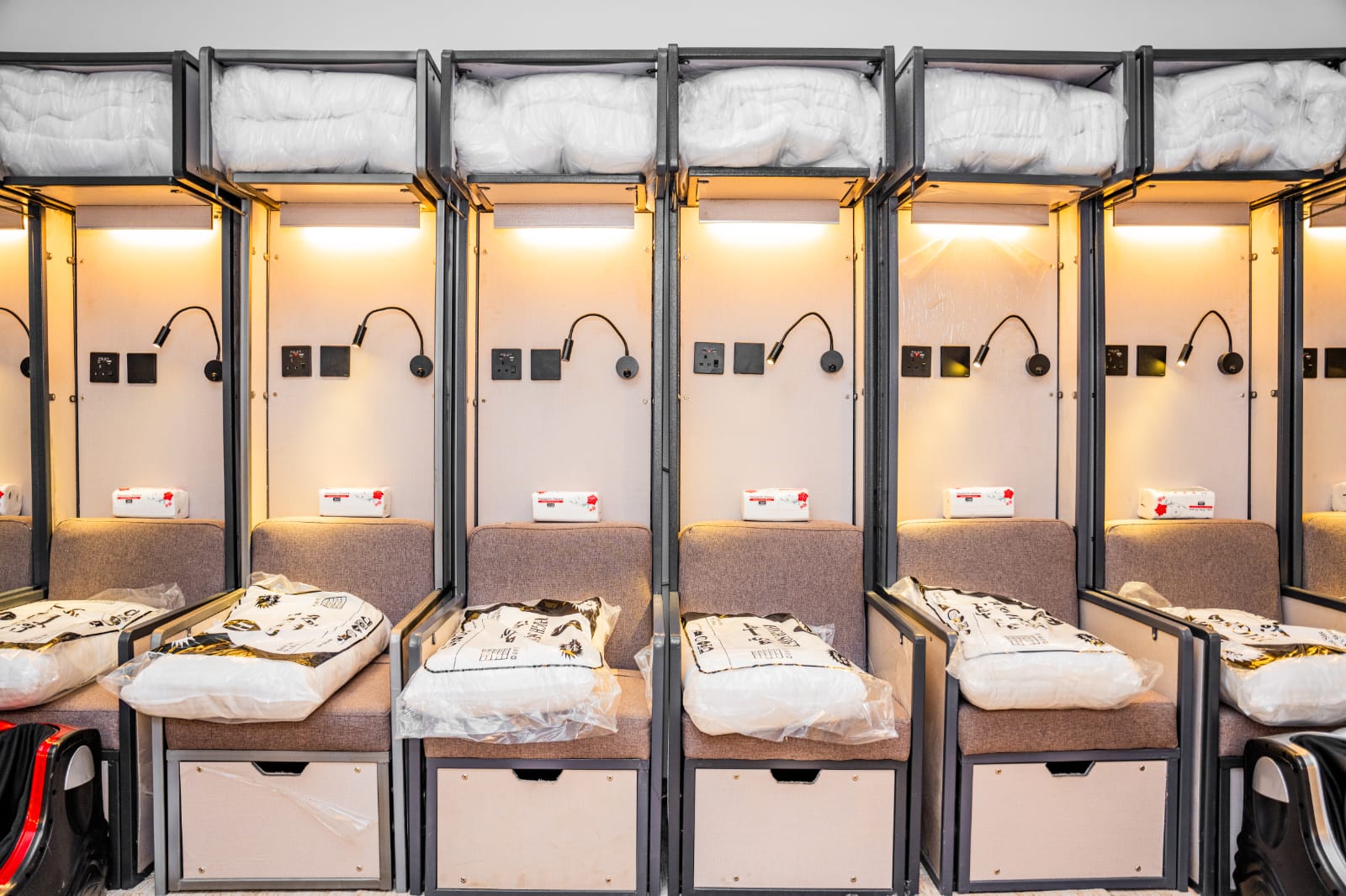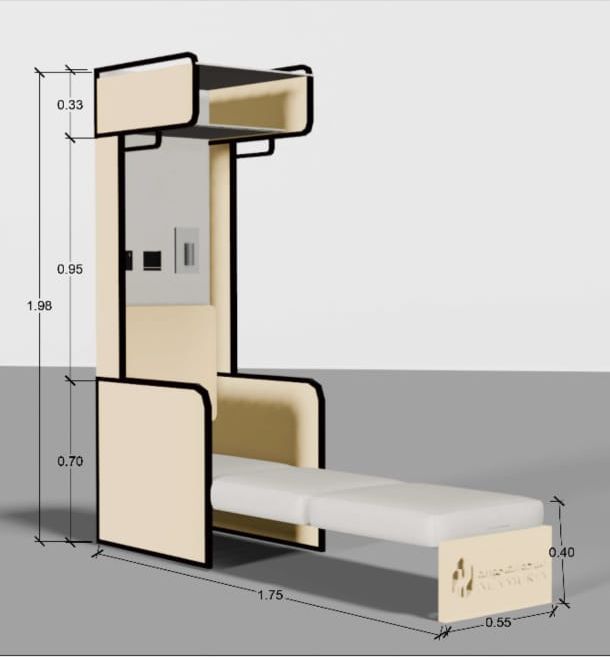 وبين أن الصوفا القابلة للطي والفرد تتحول إلى سرير متطور سهل الحركة، ولراحة أكبر استخدمت أنواعًا متميزة من الاسفنج فائق النعومة، وأيضاً تحتوي على مقابس للكهرباء ومدخل لشاحن الجوال، ومصباح للقراءة مع إضاءة ليد، معتمدة جميعها على الأنظمة المرشدة للطاقة.