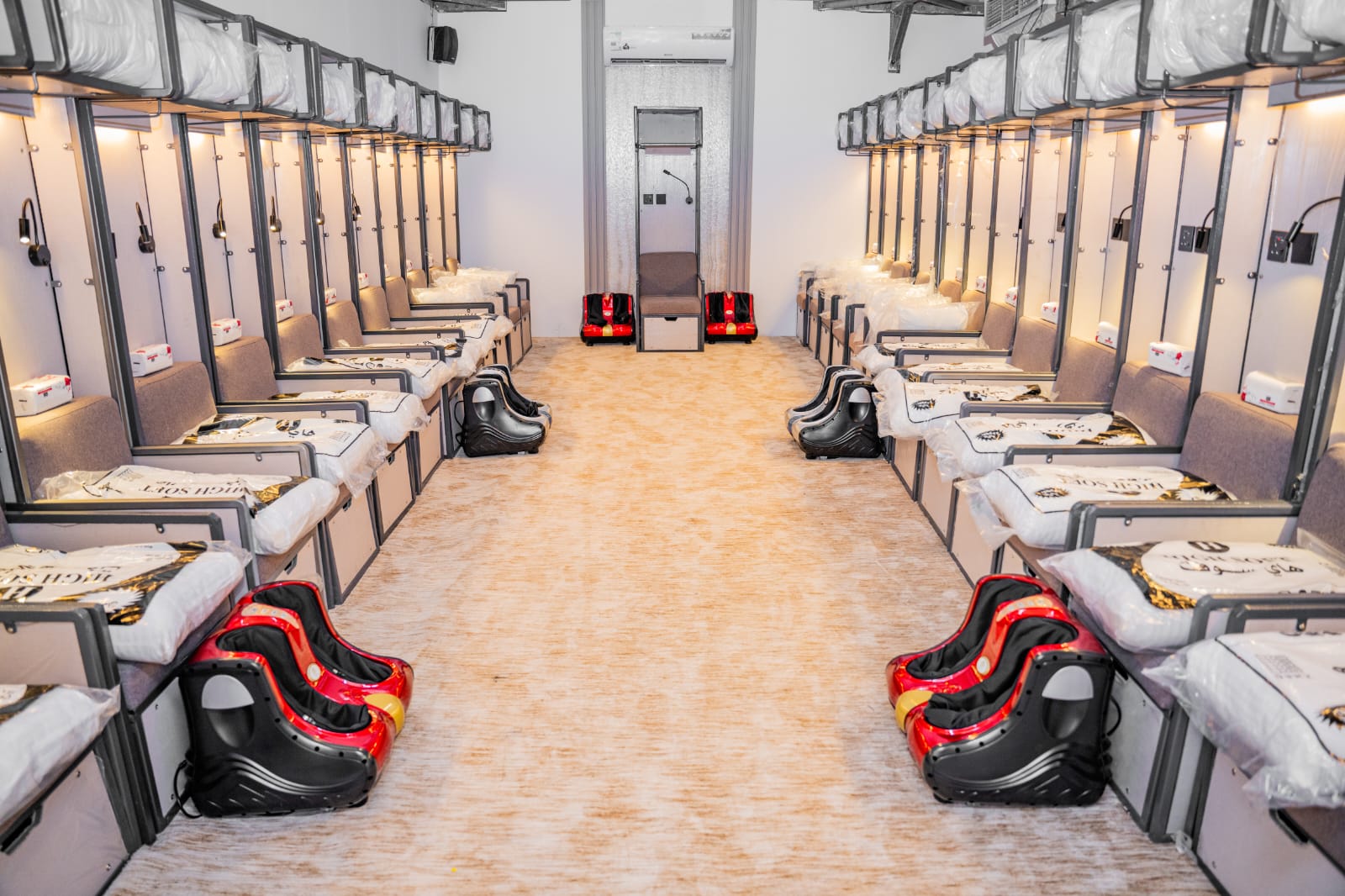 وأوضح مدير عام الشركة محمد السوادي أن ابتكار الصوفا المصنوعة من مواد صديقة للبيئة تراعي المعايير الصحية في التصميم خاصة لكبار السن، بحيث تخدم وضعية الجلوس والنوم، وتوفر مساحة لحفظ أمتعة الحاج، كما أنها قابلة للتطوير.