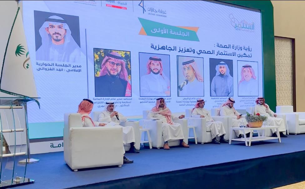 نفذ فرع  وزارة الصحة  بمنطقة جازان، اليوم الأحد، فعاليات ملتقى الاستثمار الصحي الأول تحت شعار: “استثمر في الصحة : تمكين ، نمو، استدامة”، بفندق جراند ميلينيوم في مدينة جيزان، وذلك بحضور وكيل  وزارة الصحة  المساعد لتنمية الاستثمار، الدكتور إبراهيم بن عبدالعزيز العمر، ووكيل  وزارة الصحة  المساعد للتخطيط والتميز المؤسسي، المهندس خالد آل طالع ، وعدد من قيادات  وزارة الصحة  والجهات المعنية وعدد كبير من المستثمرين من داخل وخارج منطقة جازان