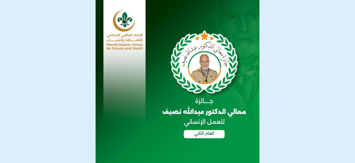 برعاية الدكتور زهير بن حسين غنيم الأمين العام للاتحاد العالمي الإسلامي للكشافة والشباب يطلق الاتحاد جائزة معالي الدكتور عبد الله عمر نصيف للعمل الإنساني .