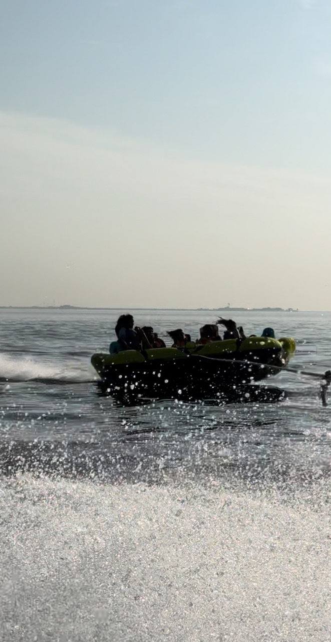 وبما أن المغامرات تجمع بين البحر والسماء واستنشاق الهواء النقي فقد تم ركوب الفتيات القوارب والسحبات والطيران الشراعي ولما فيها من تحديات وتعزيز الثقة بالنفس وتجربة شعور رؤية العالم من أواسط البحار والشعور بالحرية والهدوء حيث استمتع الجميع باكتشاف الأجواء المختلفة والمميزة بين البحر والجو .