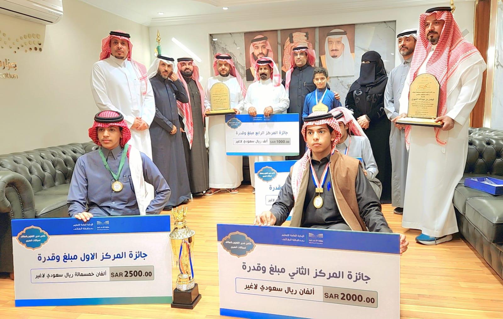 كرّم المدير العام للتعليم بالطائف الدكتور سعيد بن عبدالله الغامدي اليوم 25 طالباً وطالبة تميزو في الأنشطة الطلابية والمنافسات الوطنية والبرامج والمسابقات على مستوى الوزارة والإدارة العامة للتعليم بالطائف بحضور مديري مدارسهم وأولياء أمورهم