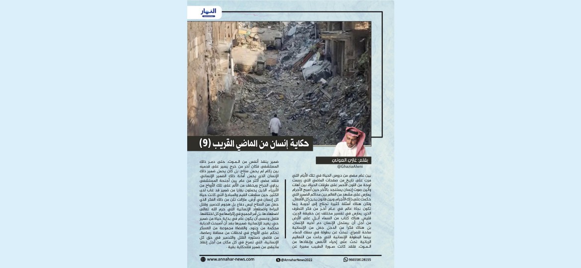 بين عام مضى من دروس الحياة في تلك الأيام التي مرت على تاريخ من صفحات الماضي التي رسمت لوحة من اللون الأحمر على طرقات الحياة بين آهات وأنين صوت إنسان يستنجد بالأخر حين أصبح الأجرام يمارس على مشهد من العالم بين محاكم الضمير التي حكمت على ذلك الأجرام وبين قانون يدين كل الأفعال ولكن هناك أسئلة كثيرة تحتاج إلى أجوبة ربما تكون نجاة عالم في عام أخر من فكر التطرف الذي يمارس في تفسير مختلف عن حقيقة الدين فليس هناك كتاب من السماء أنزل على الأرض من أجل أن يستحل الإنسان دم أخيه الإنسان بل هناك فكراً من الدجل جعل من الإنسانية ساحة للصراع تبحث عن بطولة في سفك الدماء بينما البطولة الإنسانية التي جاءت من التعاليم الربانية تحث على أحياء الأنفس وأنقاذها من الموت فلقد كانت صورة الطبيب معبرة عن ضمير ينقذ أنفس من الموت حتى دمر ذلك المستشفى فكان أخر من خرج يسير على أقدامه بين ركام لم يحمل سلاح بل كان يحمل ضمير ذلك الإنسان الذي يحمل أمانة ذلك الضمير الإنساني فلقد مضى أكثر من عام بين أجنحة المستشفى يداوي الجراح ويخفف من الألم على تلك الأرواح من الأبرياء الذين يحملون بقايا من ضمير قد غاب لدى الكثير حين سقطت القيم والمبأدئ التي كانت حياة كل إنسان في أرض مازالت تئن من ذلك الفكر الذي جعل من السلاح ليس دفاع بل هجوم للتدمير وقتل البراءة وأظطهاد الإنسانية التي حرم الله تعالى أظطهادها بل أمر الجميع في أكرامها مع كل أختلافها فلعل وعسى أن يكون عام في بداية حياة من ضمير حي يعيد للإنسانية ضميرها بعد ان أصبحت الدبابة محكمة من جنود والقضاة مجموعة من العسكر تحكم على الأرواح في لحظات من مسافة رصاصة من قاضي دستوره القتل والتدمير في حق كل الإنسانية التي تصرخ