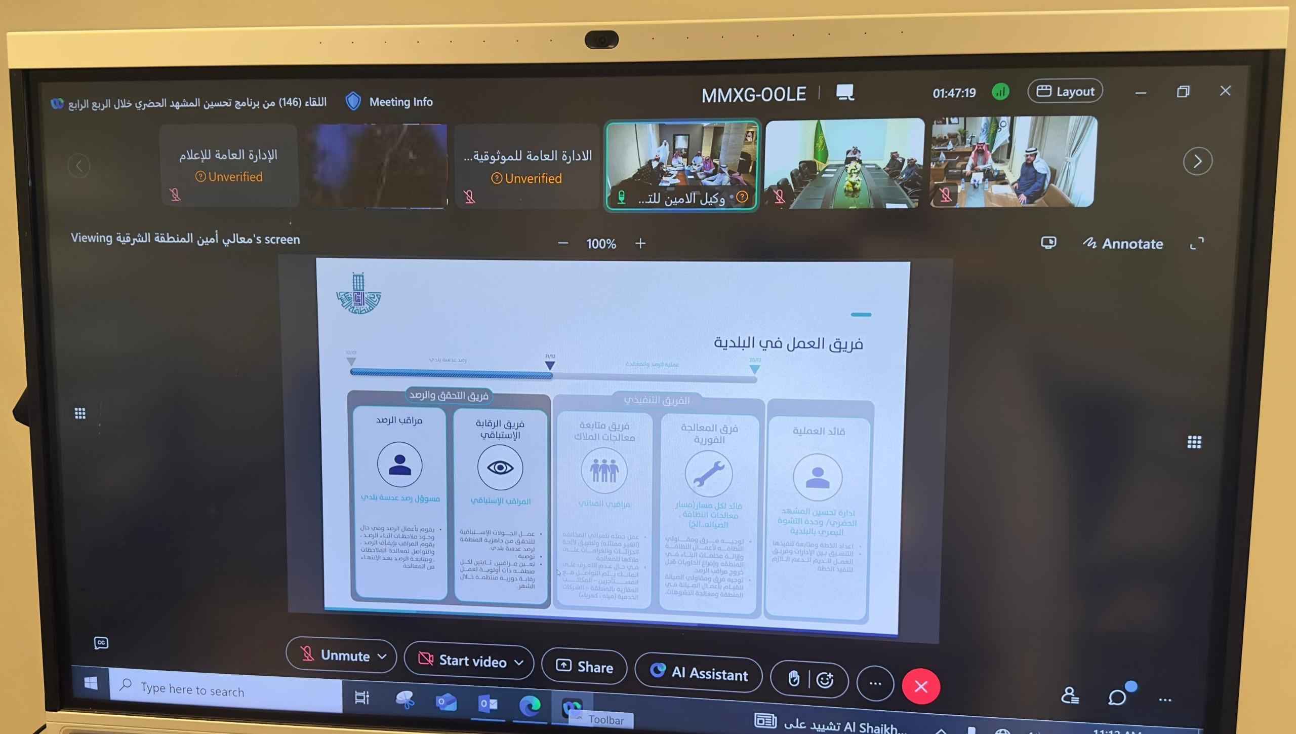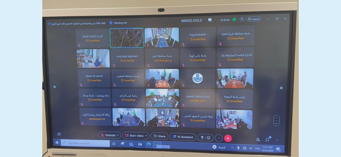 واختتم الاجتماع بعرض ومناقشة تقرير بلاغات التشوه البصري السنوي للإدارة العامة للموثوقية والأداء – إدارة الطوارئ والبلاغات 940، من تاريخ 01/01/2024م حتى 28/12/2024م، حيث بلغت إجمالي الطلبات (21.533) طلب، و(102.223) بلاغ، والذي تضمن أعلى خمس تصانيف في التشوه البصري.)