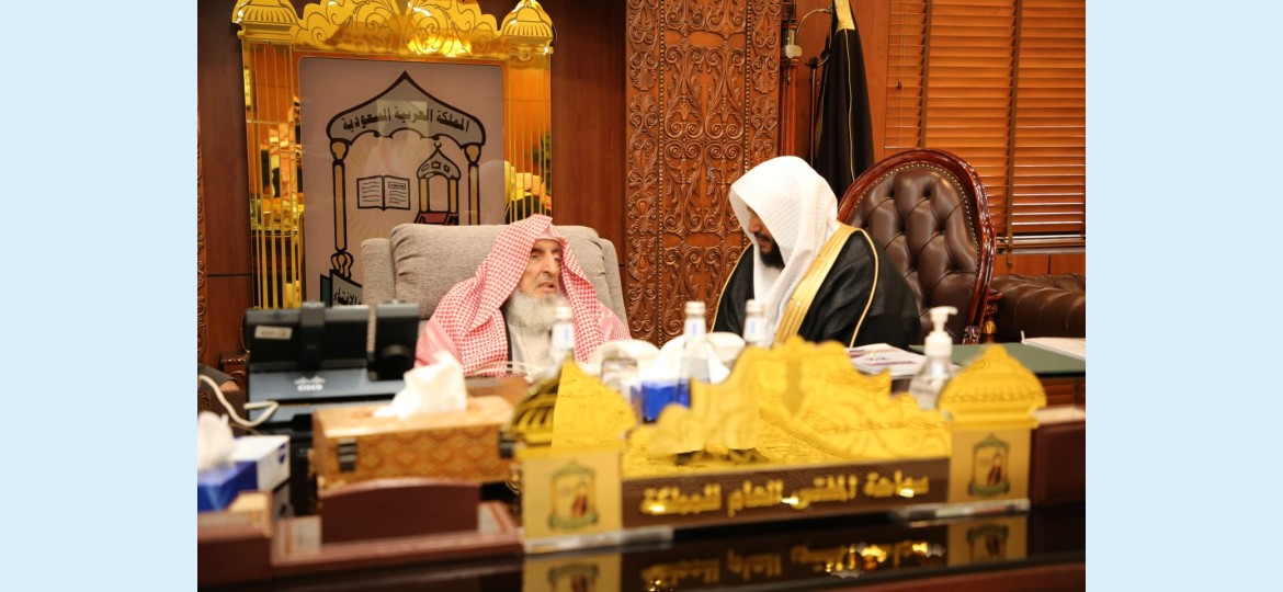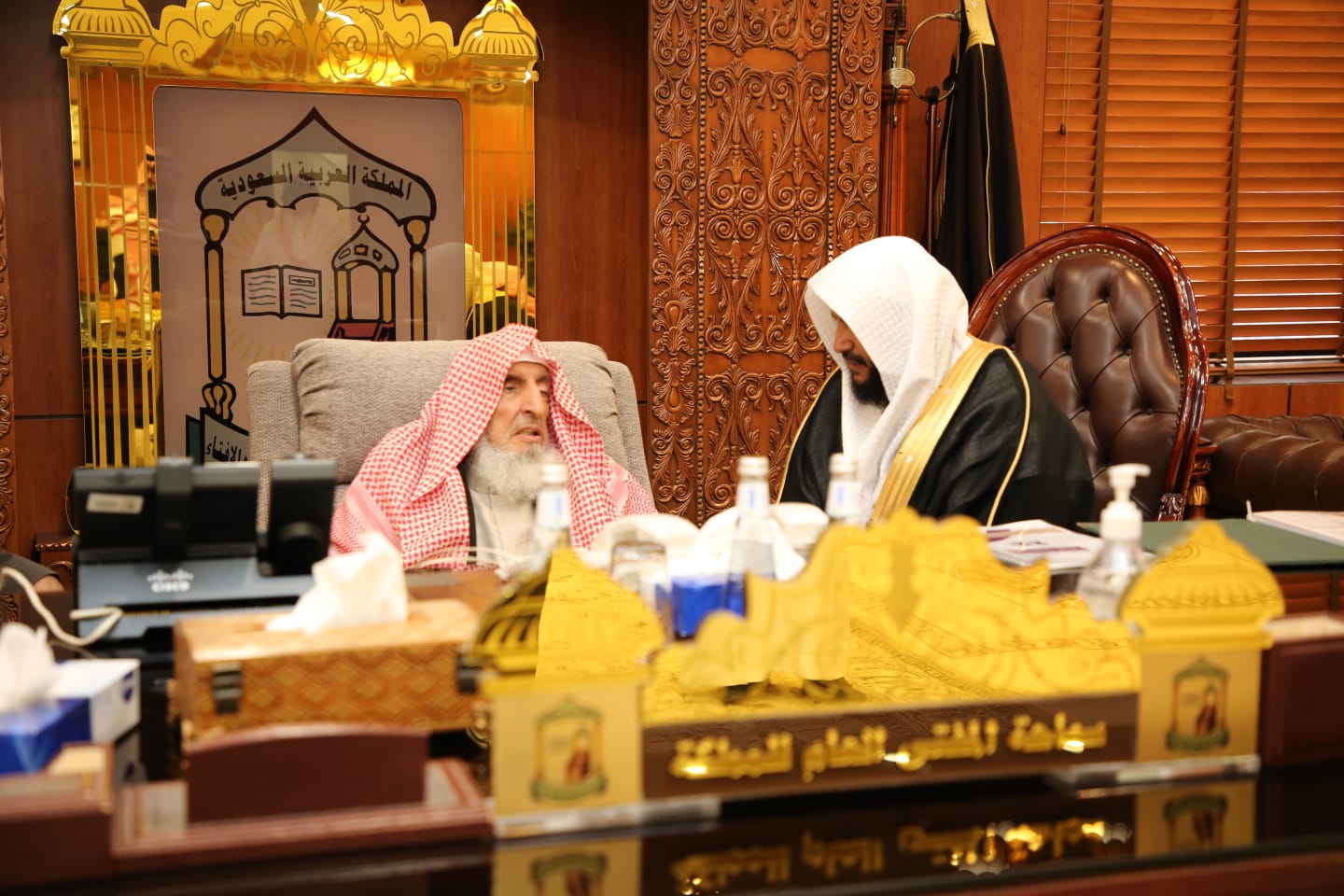 استقبل سماحة مفتي عام المملكة، رئيس هيئة كبار العلماء، والرئيس العام للبحوث العلمية والإفتاء، الشيخ عبدالعزيز بن عبدالله آل الشيخ، في مكتبه بالرئاسة العامة، رئيس مجلس إدارة جمعية ساعد القانونية لخدمة الأرامل والأيتام، الدكتور علي الشويش، يرافقه أعضاء مجلس إدارة الجمعية.