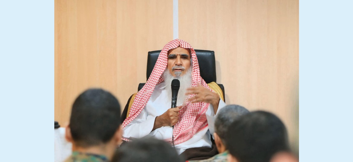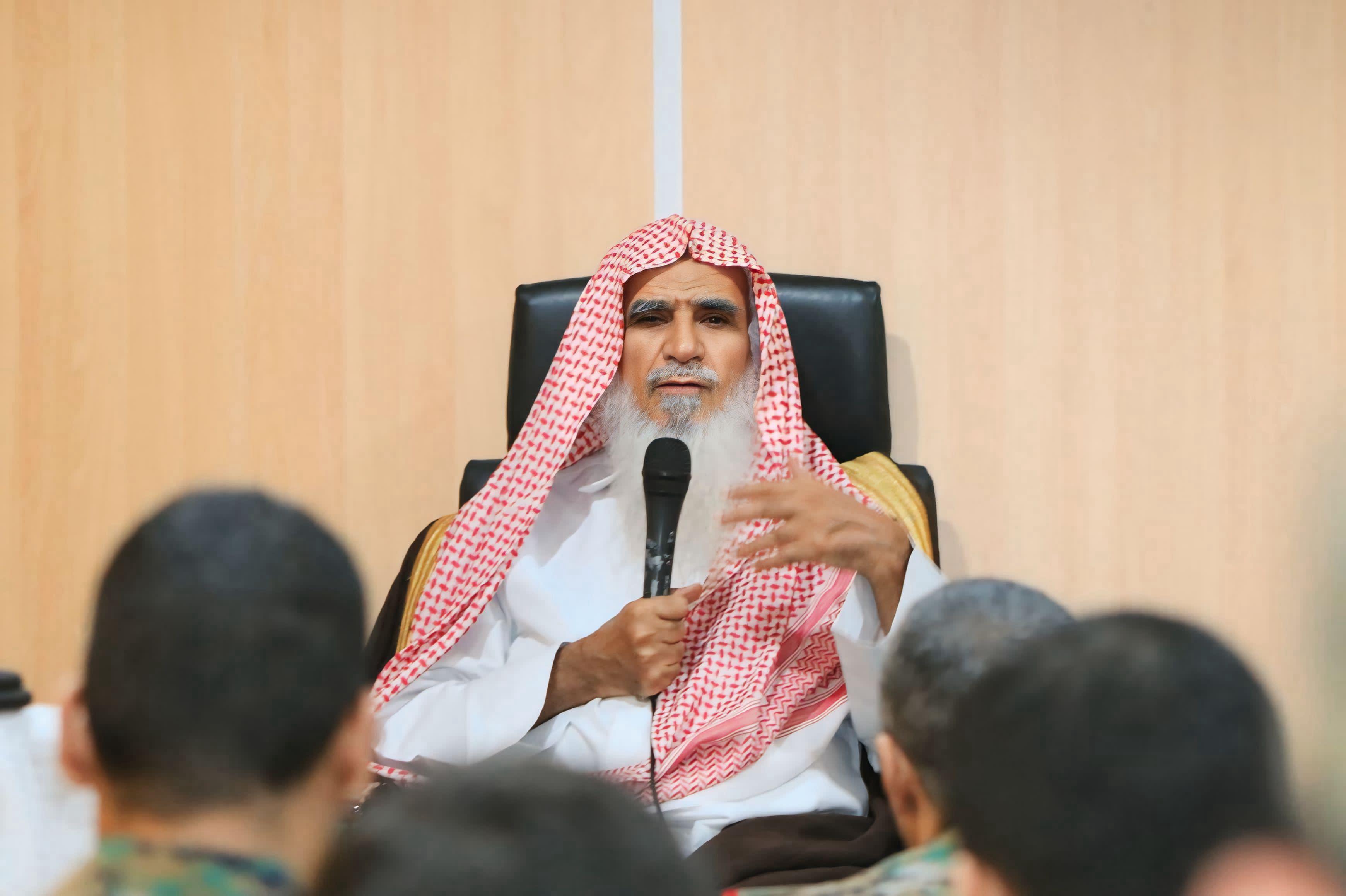 وابتدأ فضيلة مفوض الإفتاء حديثه بالشكر لسمو أمير منطقة جازان وسمو نائبه وسماحة مفتي عام المملكة ومعالي نائبه على تعميم هذه المبادرة ولسعادة قائد الأفواج الأمنية بمنطقة جازان حُسن الاستقبال، وتحدث فضيلته عن أهمية عمل الأفواج الأمنية وأهمية استشعار أنهم في رباط عظيم، وذكر فضيلته أن اللحمة الوطنية تبدأ بالقلب ثم تنتشر لبقية الجسد، كما تحدث فضيلته عن ضرورة استشعار الجميع للمسؤولية في أعمالهم وأن يفقهوا أن هذه أمانه يجب تأديتها على الوجه المطلوب، ونوه فضيلة مفوض الإفتاء أن الإتقان في العمل يأتي بالتلاحم ووصى العاملين في الأفواج الأمنية بالصبر وبشرهم بكل خير قائلاً " كل من أراد خيراً لأمته حتى وإن لم يتحقق كُتبت له نيته.
