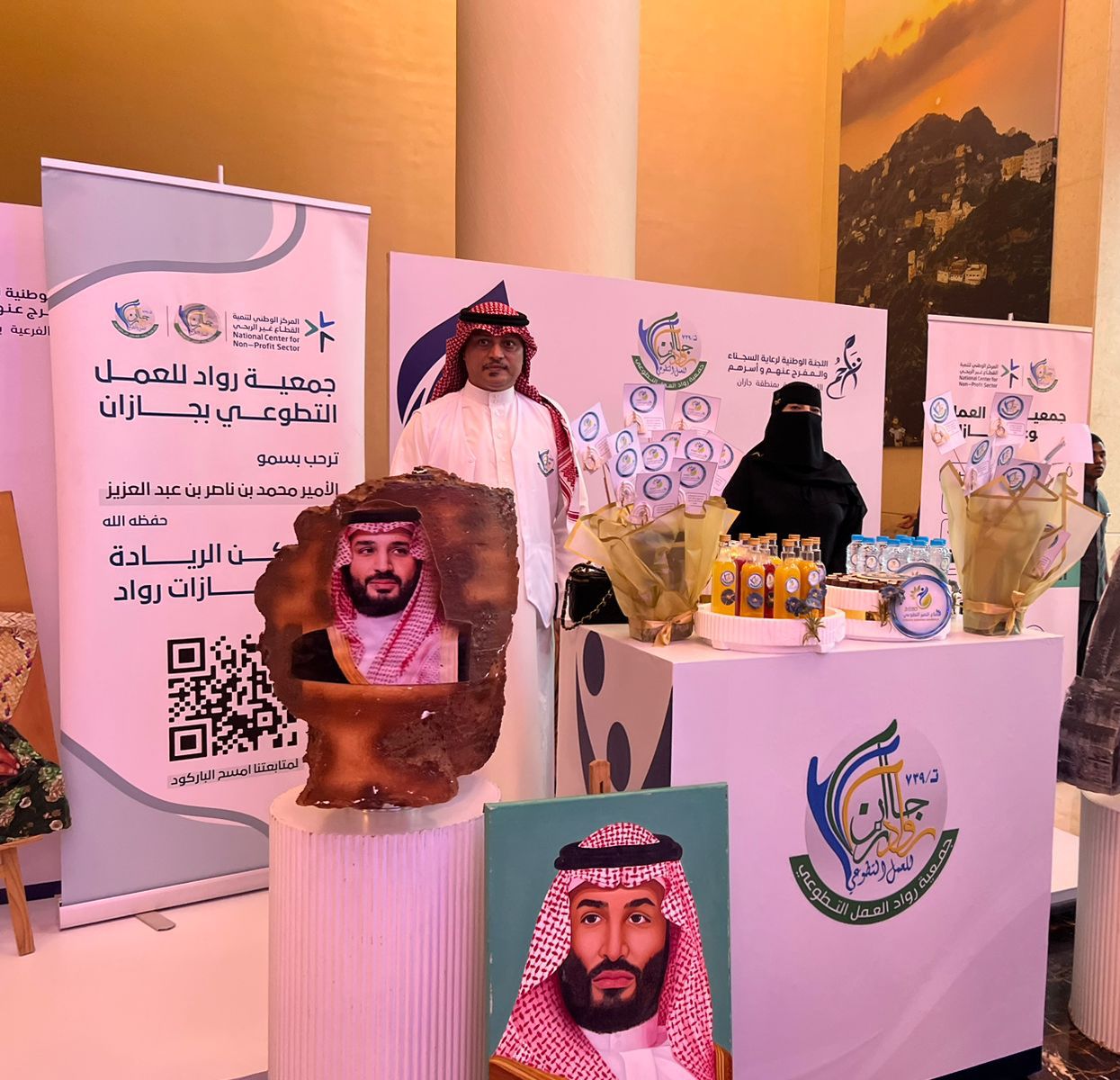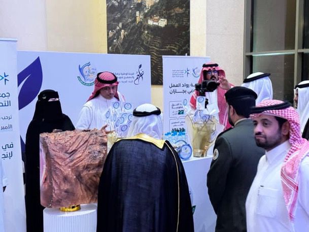 وتميزت الجمعية بتقديم ركن إبداعي احتوى على مجسم لجبل طويق ولوحات فنية وبعض التوزيعات التعريفية للجمعية ، حظيت بإعجاب وكيل الإمارة، ورئيس لجنة تراحم جازان وزوار الركن، كما استمع الجميع لشرح مفصل من قبل الأستاذ عبدالكريم خواجي والأستاذة زهراء النعمي عن المشروع الذي تم بين الجمعية ولجنة تراحم والمنجزات التي تحققت من خلاله