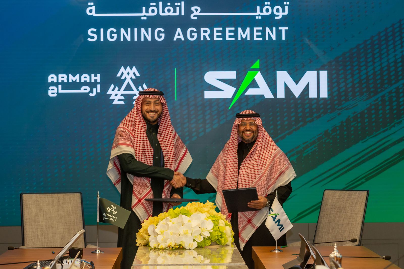 وجرت مراسم توقيع الاتفاقية في مقر شركة SAMI، بحضور سعادة الأستاذ وائل بن محمد السرحان، الرئيس التنفيذي للتواصل والخدمات المساندة في SAMI، وسعادة الأستاذ فهد بن علي الحقباني، نائب رئيس مجلس الإدارة الرئيس التنفيذي لشركة أرماح الرياضية.
