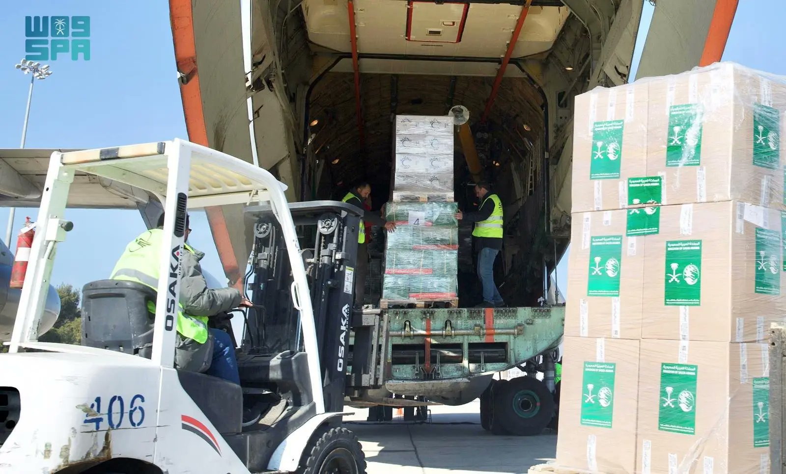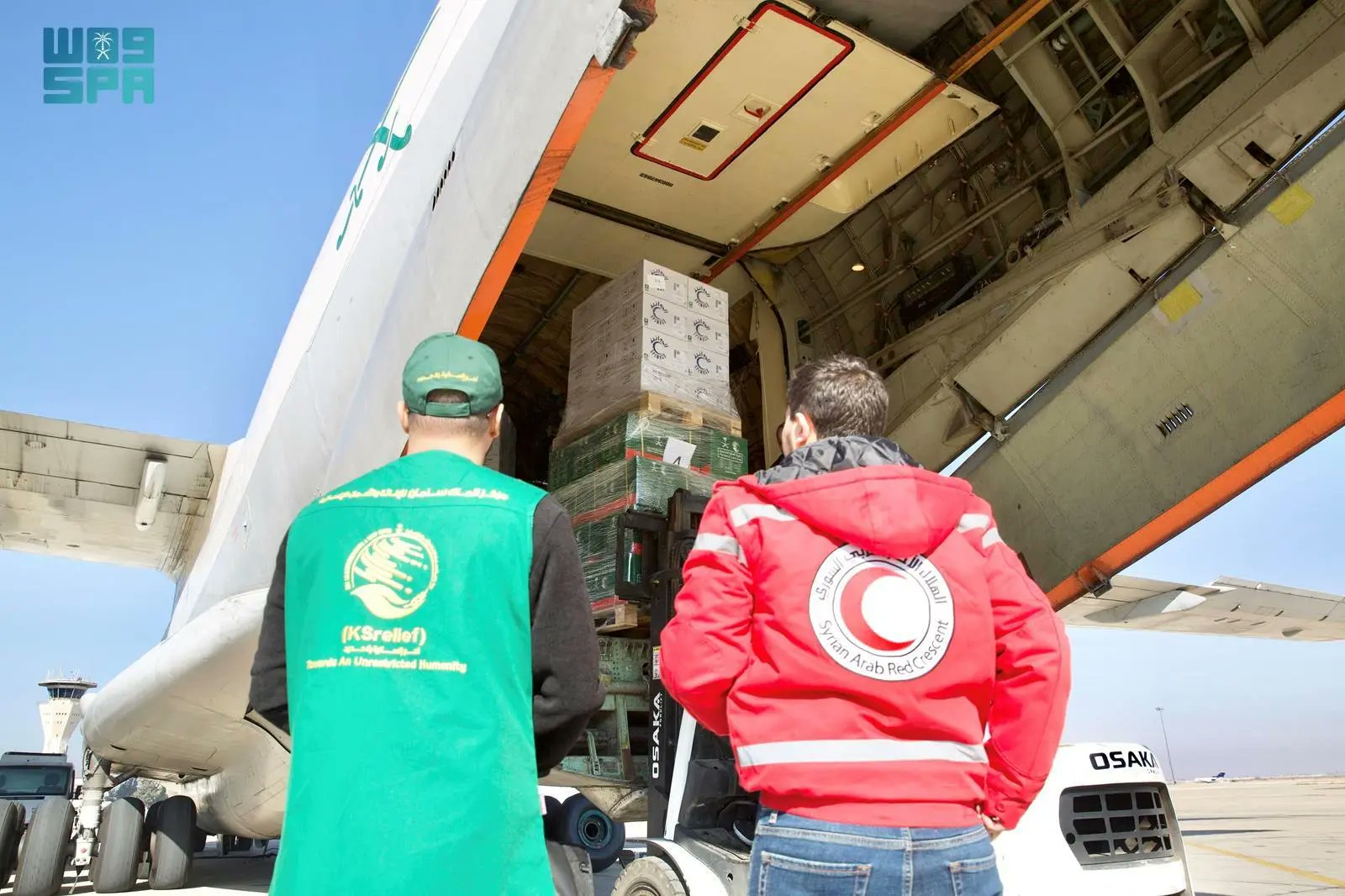 وصلت إلى مطار دمشق الدولي بالجمهورية العربية السورية اليوم، الطائرة الإغاثية الخامسة ضمن الجسر الجوي السعودي الذي يسيّره مركز الملك سلمان للإغاثة والأعمال الإنسانية لمساعدة الشعب السوري الشقيق تحمل على متنها المواد الغذائية والإيوائية والطبية.