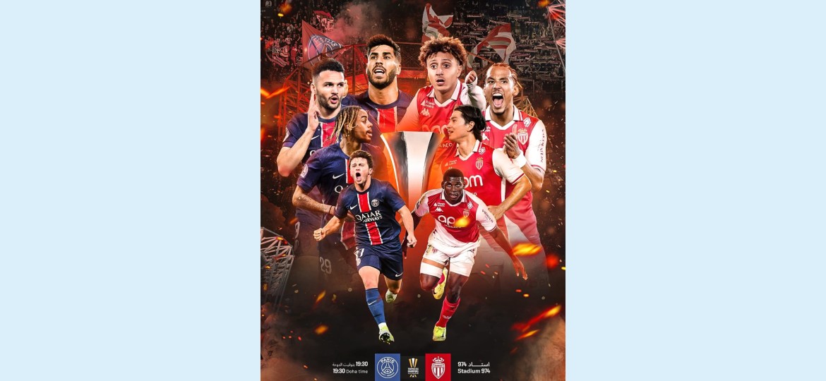 يواجه موناكو مساء اليوم الأحد نظيره باريس سان جيرمان في كأس السوبر الفرنسي، في مباراة تقام على أرضية إستاد 974 بالعاصمة القطرية الدوحة. وقد أجرى الفريقان استعداداتهما الأخيرة لخوض النسخة الثلاثين من البطولة، حيث يدخل باريس سان جيرمان اللقاء بصفته بطل الدوري والكأس، بينما يخوض موناكو المباراة كوصيف للدوري.