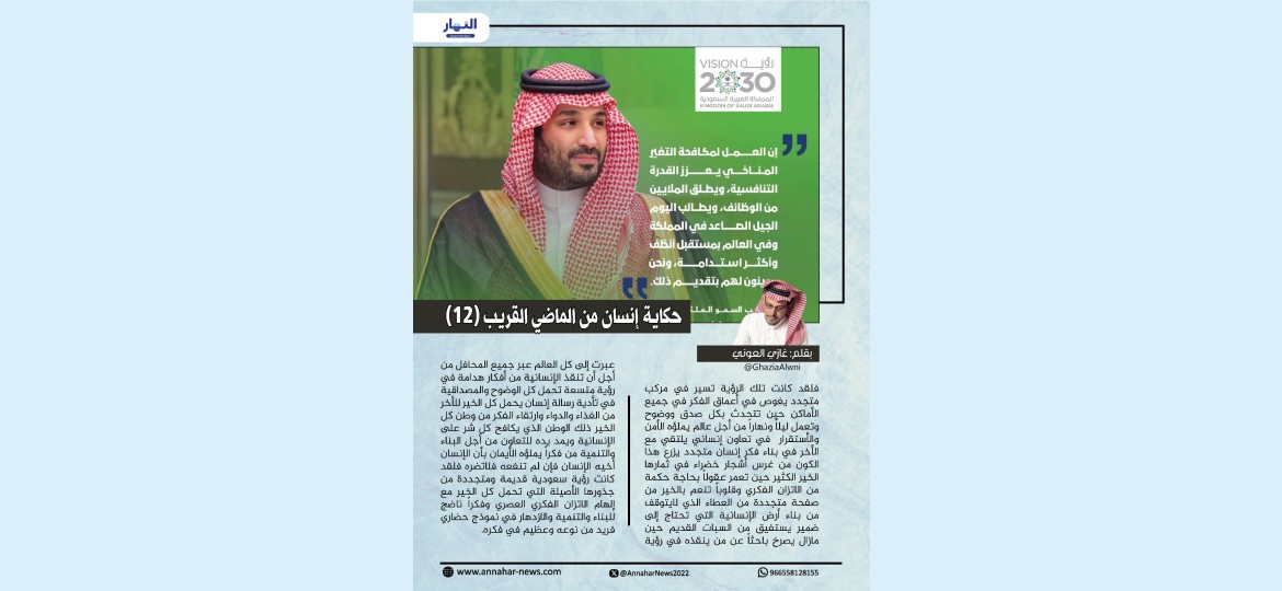 فلقد كانت تلك الرؤية تسير في مركب متجدد يغوص في أعماق الفكر في جميع الأماكن حين تتحدث بكل صدق ووضوح وتعمل ليلاً ونهاراً من أجل عالم يملؤه الأمن والأستقرار في تعاون إنساني يلتقي مع الأخر في بناء فكر إنسان متجدد يزرع هذا الكون من غرس أشجار خضراء في ثمارها الخير الكثير حين تعمر عقولاً بحاجة حكمة من الاتزان الفكري وقلوباً تنعم بالخير من صفحة متجددة من العطاء الذي لايتوقف من بناء أرض الإنسانية التي تحتاج إلى ضمير يستفيق من السبات القديم حين مازال يصرخ باحثاً عن من ينقذه في رؤية عبرت إلى كل العالم عبر جميع المحافل من أجل أن تنقذ الإنسانية من أفكار هدامة في رؤية متسعة تحمل كل الوضوح والمصداقية في تأدية رسالة إنسان يحمل كل الخير للأخر من الغذاء والدواء وارتقاء الفكر من وطن كل الخير ذلك الوطن الذي يكافح كل شر على الإنسانية ويمد يده للتعاون من أجل البناء والتنمية من فكراً يملؤه الأيمان بأن الإنسان أخيه الإنسان فإن لم تنفعه فلاتضره فلقد كانت رؤية سعودية قديمة ومتجددة من جذورها الأصيلة التي تحمل كل الخير مع إلهام الاتزان الفكري العصري وفكراً ناضج للبناء والتنمية والازدهار في نموذج حضاري فريد من نوعه وعظيم في فكره.