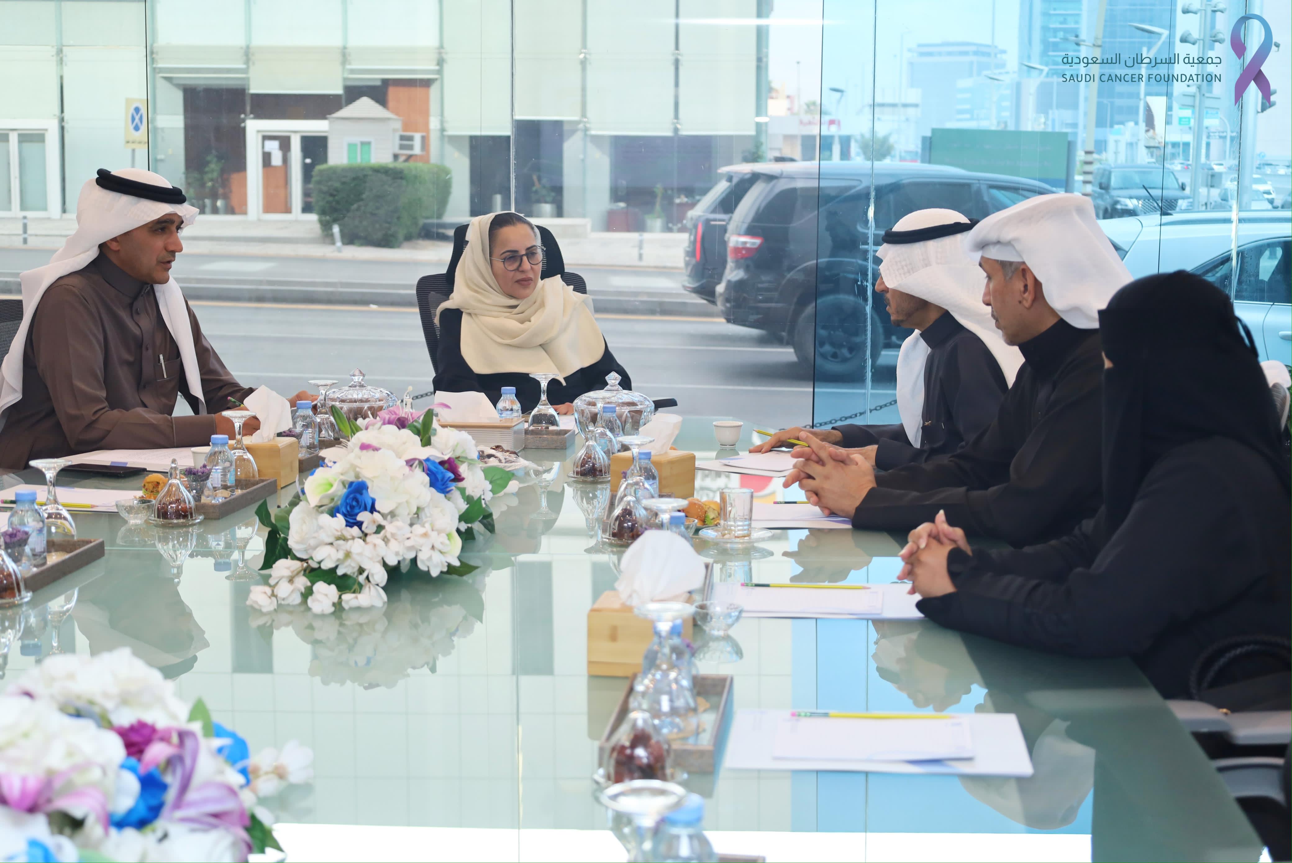 استقبل رئيس مجلس إدارة جمعية السرطان السعودية الأستاذة مي بنت عبدالعزيز الجبر ومنسوبيها في مقر الجمعية بالخبر الدكتور عبدالله بن حسين القاضي وكيل جامعة الإمام عبد الرحمن بن فيصل للدراسات والتطوير وخدمة المجتمع سابقاً والقامة العلمية وعراب العمل الخيري بالمنطقة الشرقية .
