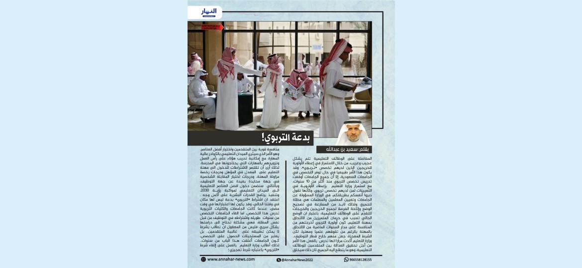 المفاضلة على الوظائف التعليمية تتم بشكل عجيب وغريب، من خلال الاستمرار في إعطاء الأولوية للخريجين الذين لديهم تخصص "تربوي"، وقد يكون هذا الأمر طبيعيا في حال توفر التخصص في الجامعات السعودية، إلا أن جميع الجامعات أوقفت تدريس تخصص التربوي منذ أكثر من 10 سنوات، مع استمرار وزارة التعليم  بإعطاء الأولوية في التعيينات لمن لديهم تخصص تربوي، وكأنها تقول دبروا أنفسكم بطريقتكم، في الوزارة المسؤولة عن الجامعات وتعيين المعلمين والمعلمات هي مظلة للجميع، ولذلك لابد من المسارعة في تصحيح الوضع وإتاحة الفرصة لجميع الخريجين والخريجات للتقدم على الوظائف التعليمية، باعتبار ان الوضع الحالي تسبب في حرمان المتميزين من الالتحاق بمهنة التعليم، كون أولوية التربوي أخرجتهم من المنافسة على مدار السنوات الماضية من الالتحاق بالمهنة بالرغم من تفوقهم علميا ومهنيا، لكن الشرط المعجزة، جعل منهم خارج قطار التوظيف..