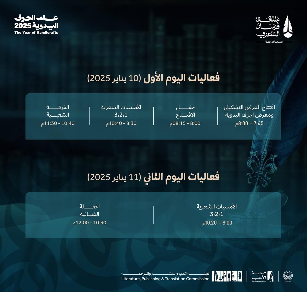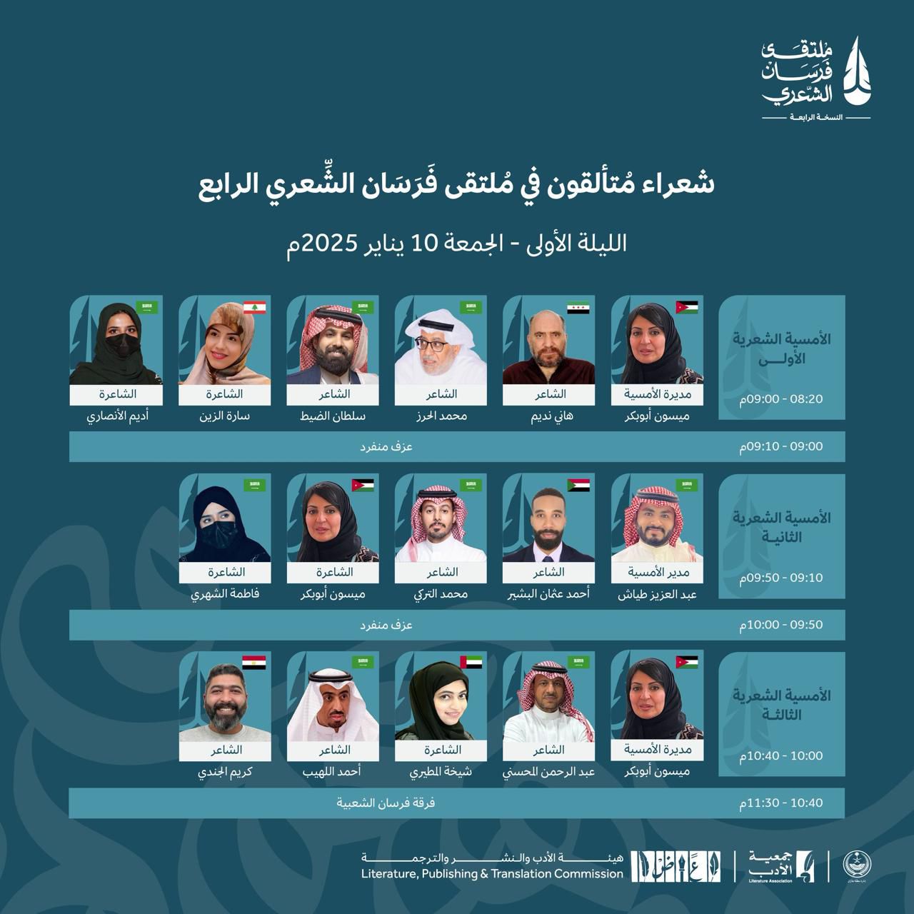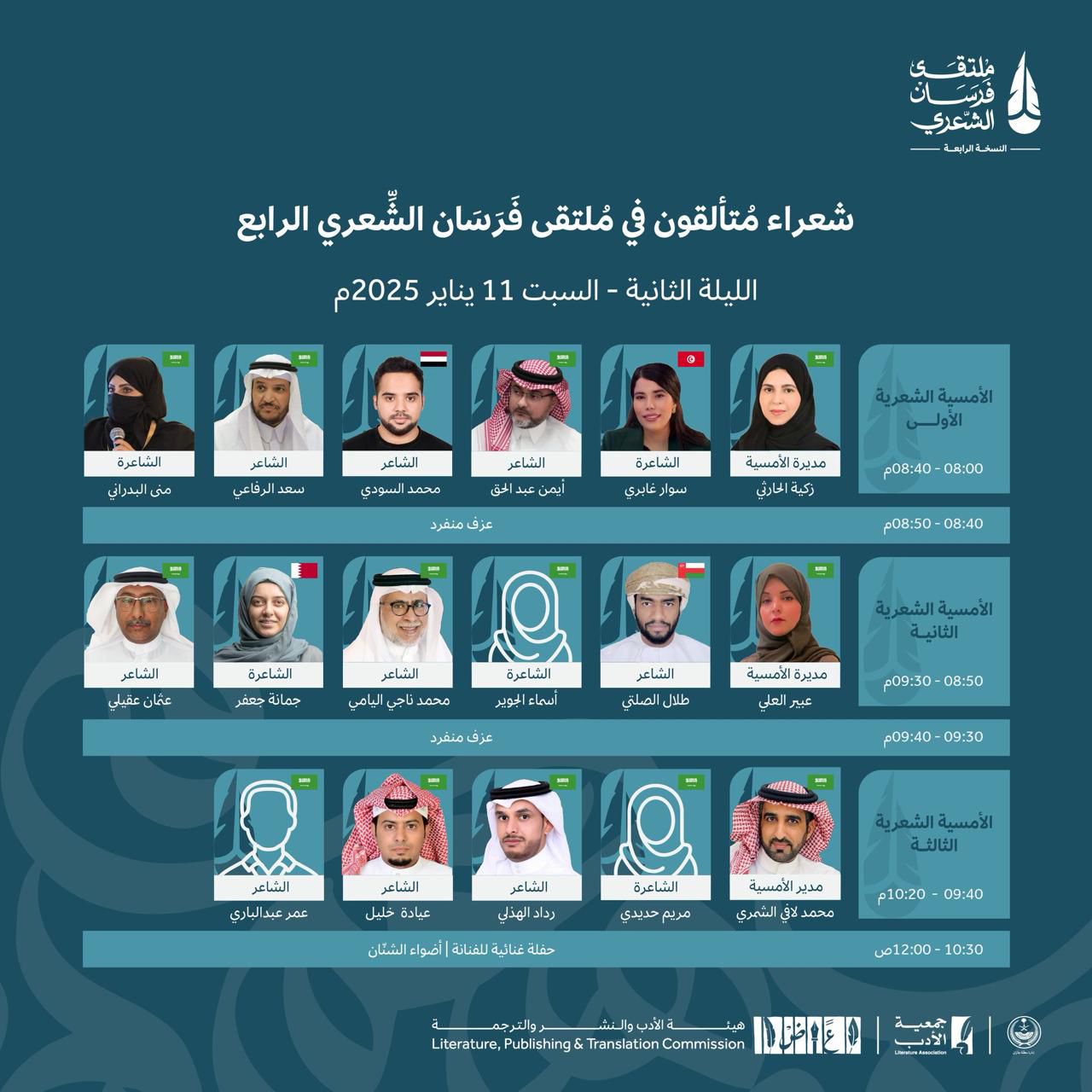 بدأت طلائع الشعراء تهطل على أرض الشعر لتخضر المساحات بالقوافي ومحسنات البديع ، حول البحر ستنبت القصائد المعتقة القادمة من الساحل الشرقي ليمتزج ماء الشرق بماء الغرب ، ليكون العنوان منسوجًا فريدًا وستنضم القصائد القادمة من الشمال لتضمها قصائد الجنوب وسط حضور مدهش لمنتصف الشعر .