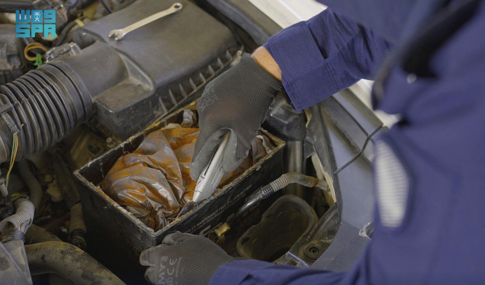 وفي المحاولة الثانية أوضحت الهيئة أنه قَدِمت إلى المملكة مركبة عبر منفذ الربع الخالي، وعند خضوعها للإجراءات الجمركية، عُثر على (4.140) كيلوجرامات من الشبو، مُخبأة في البطارية الخاصة بالمركبة، وذلك بإخفاء المضبوطات في تجويف البطارية.