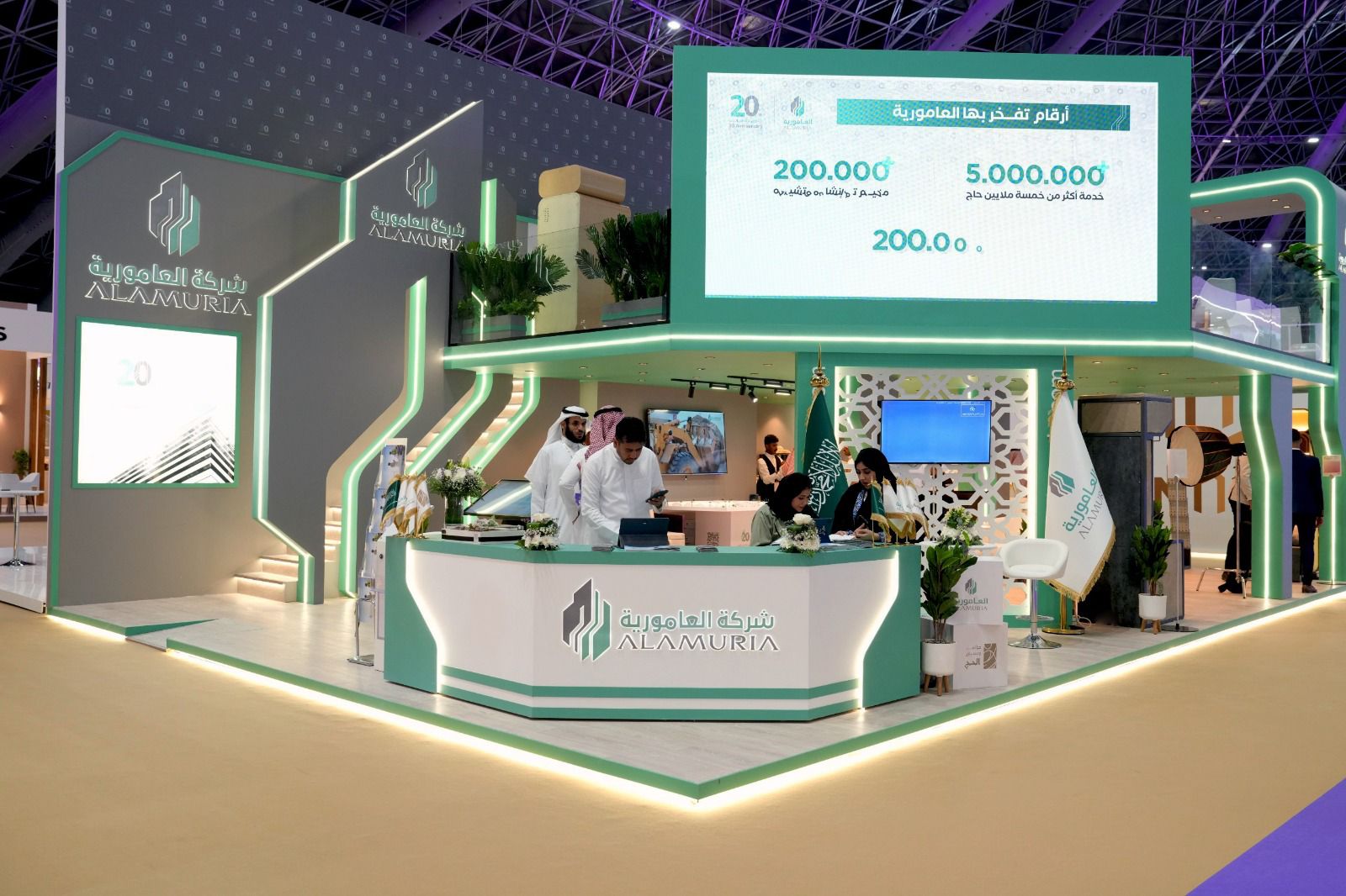 الى ذلك، شهد جناح شركة العامورية بمؤتمر ومعرض الحج اقبالا ملحوظاً وتفاعلا كبيراً من الزوار، حيث زار الجناح عدد من الوفود ومسؤولي بعثات الحج والسفارات، وعبر عدد من الزوار عن اعجابهم بما شاهدوه من مشاريع مبتكرة وخاصة مشروع "صوفا بيد نسك" المطورة، واستمتعوا بالعروض المقدمة عبر النظارة التفاعلية.