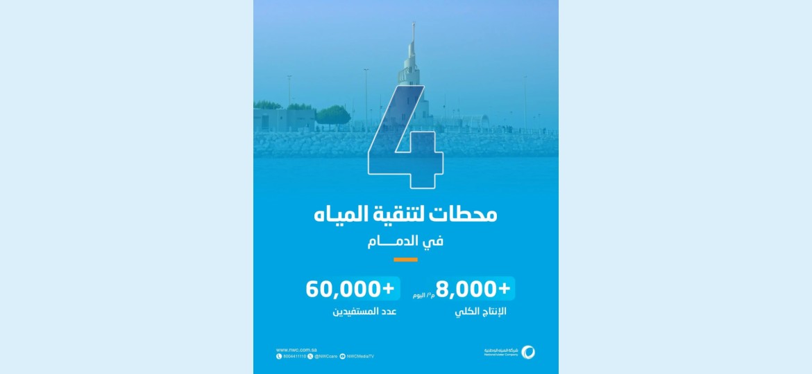 استكملت شركة المياه الوطنية تشغيل (4) محطات جديدة لتنقية مياه الشرب في حي الشعلة بمدينة الدمام في المنطقة الشرقية، حيث تمثل هذه المحطات الحزمة الثانية المخصصة لتنقية مياه الشرب في مدن المنطقة الشرقية ومحافظاتها؛ وذلك بهدف تحسين جودة المياه المقدمة للعملاء، وزيادة نطاق التغطية بالمياه المحلاة.
