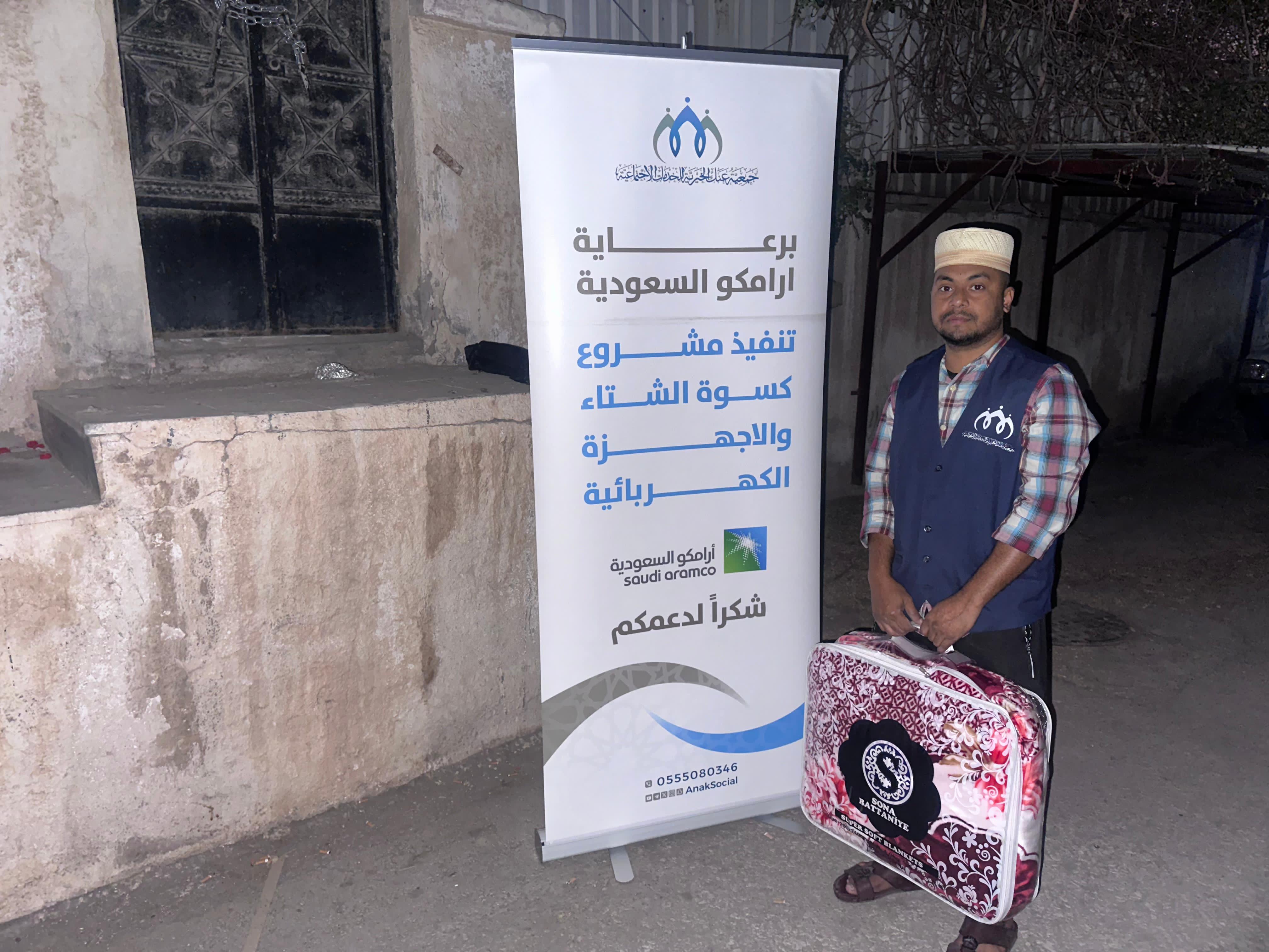 برعاية شركة أرامكو السعودية تم تنفيذ مشروع كسوة الشتاء وعدد من الأجهزة الكهربائية لمستفيدي جمعية عنك الخيرية للخدمات الاجتماعية حيث تم عدد 100 بطانية و11 ثلاجة 6 غسالات لعدد 117 من المستفيدين وهذا المشروع يأتي امتداد للبرامج والمبادرات والمشاريع التي يساهم في تقديمها ودعمها شركاء النجاح لدعم المستفيدين والايتام والأرامل والمحتاجين .