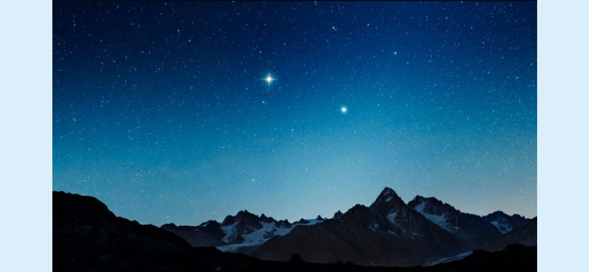 وبين أن كوكبي الزهرة وزحل يظهران في نفس البقعة من السماء وبالقرب من بعضها لأنهما على نفس خط الرؤية من الأرض ولكن في الحقيقة يفصل بينهما مسافة شاسعة جدًا في الفضاء.