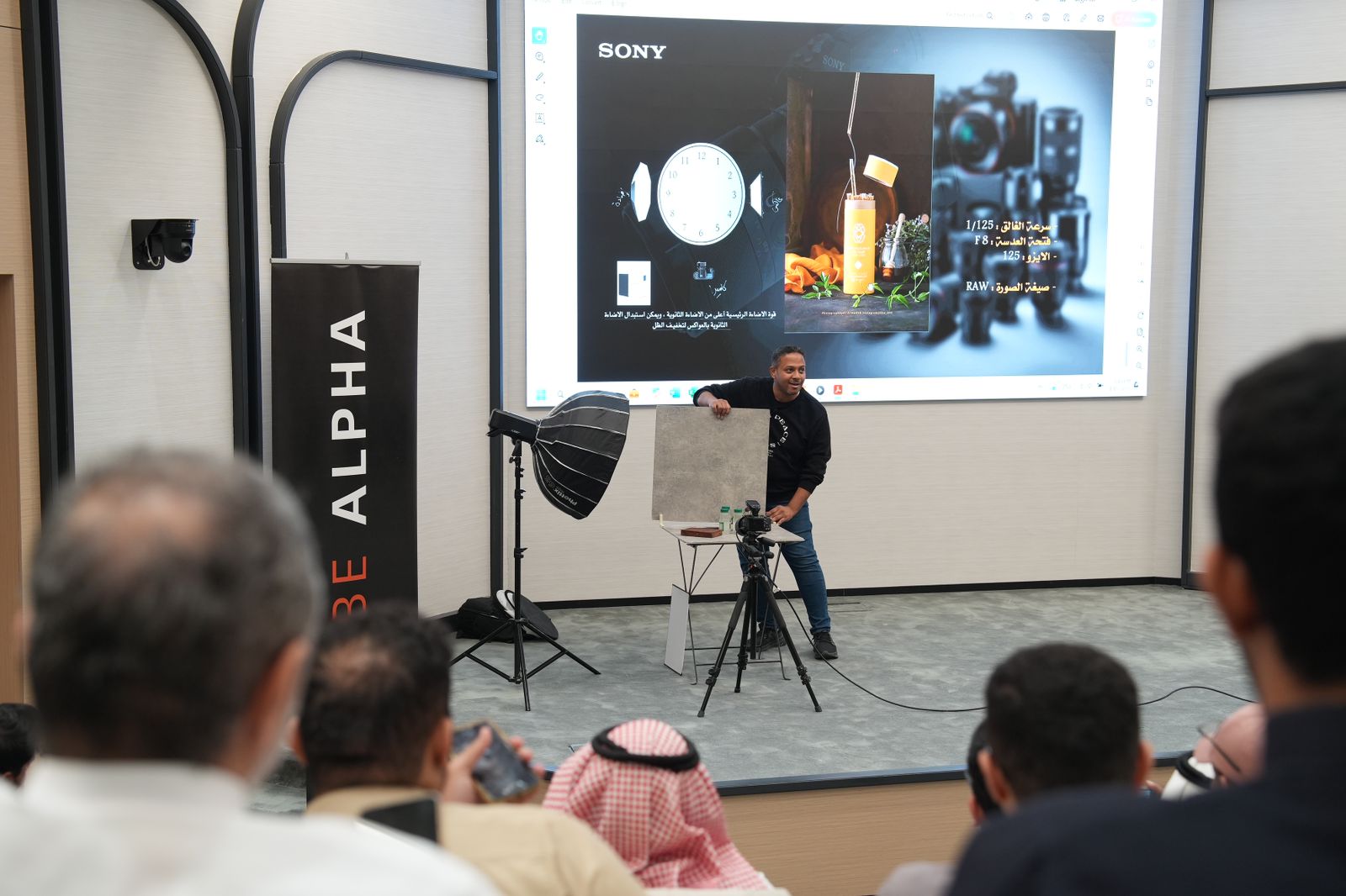 افتتح البرنامج الذي نجح في تسجيل مشاركة واسعة من المهتمين، بدءًا من الهواة وصولًا إلى المحترفين، إلى جانب عدد من الصحفيين والإعلاميين، بكلمة ترحيبية ألقاها الأستاذ أحمد المنصور مساعد الأمين العام لخدمات العملاء بالغرفة، أكد خلالها على دور الغرفة وتاريخها الرائد في دعم التصوير والمصورين ومجالات الفنون الإبداعية والبصرية. كما ألقت الأستاذة حنان عمران مديرة فعاليات سوني للتصوير في المملكة كلمة أشادت فيها بالشراكة المثمرة مع الغرفة.