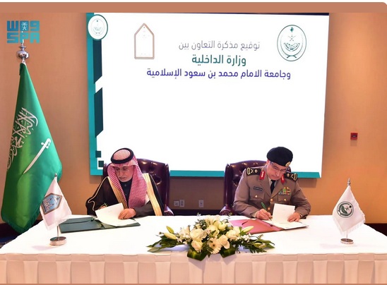 وقّعت وزارة الداخلية وجامعة الإمام محمد بن سعود الإسلامية اليوم (الثلاثاء 21 رجب 1446هـ الموافق 21 يناير 2025م)، مذكرة تعاون لتعزيز ودعم مجالات البحث والتدريب وتبادل الخبرات، وذلك في مقر نادي منسوبي وزارة الداخلية بمدينة الرياض.