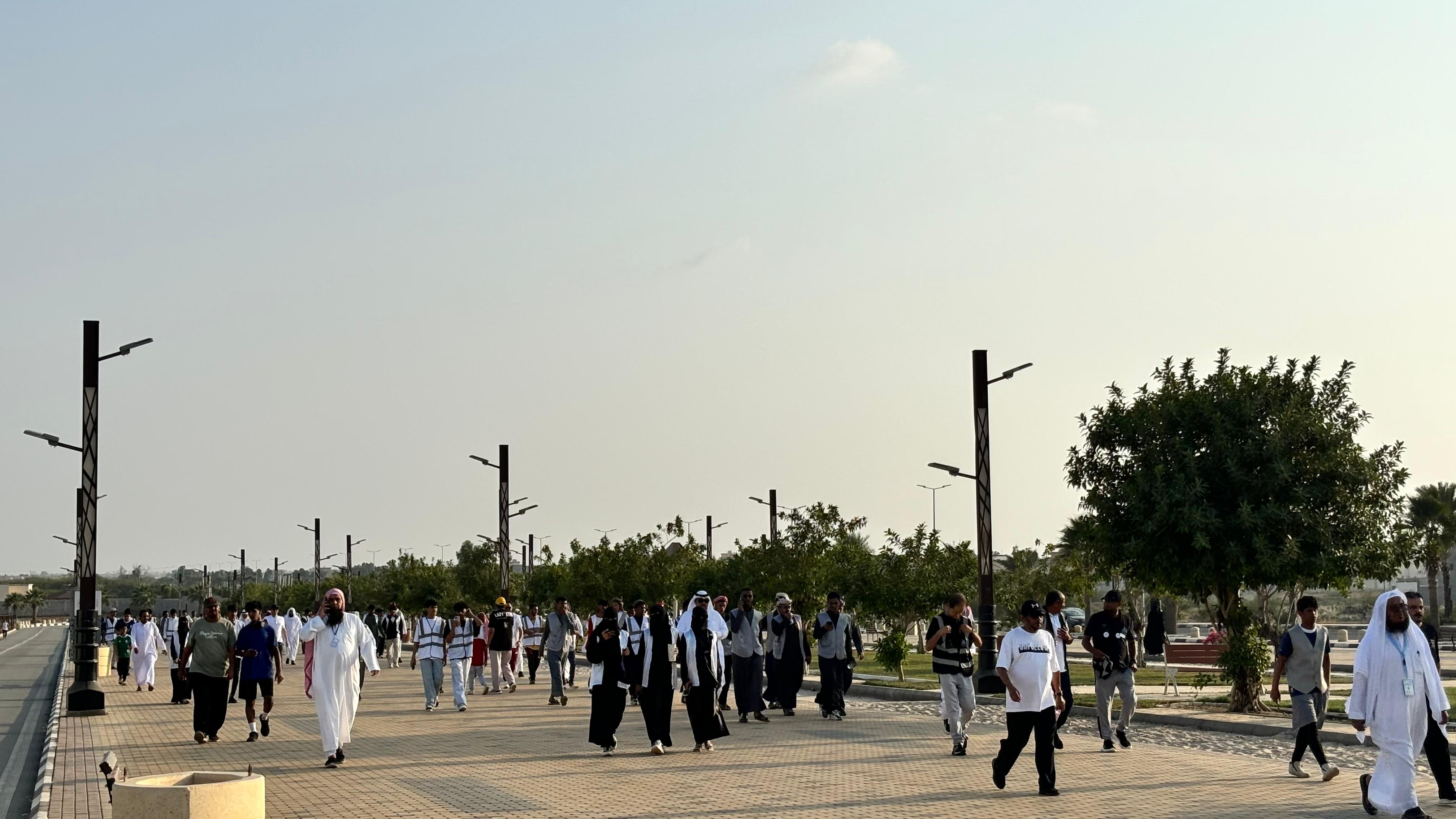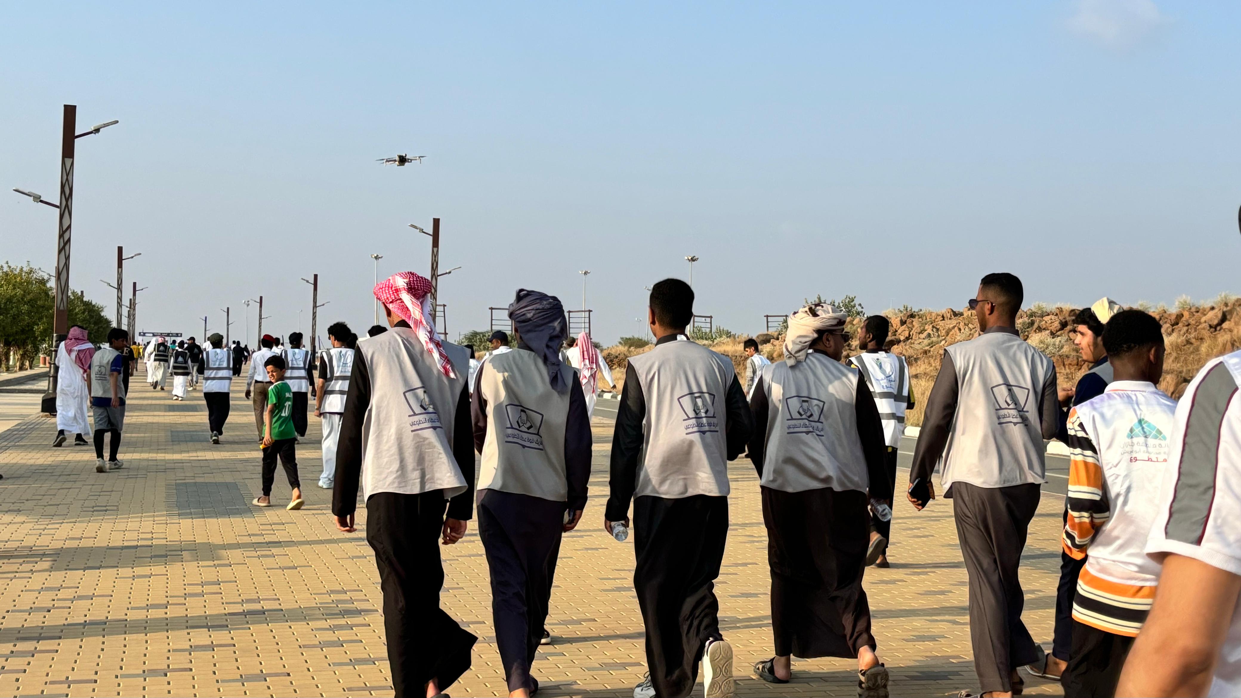 ثم شارك سعادة محافظ أبو عريش أ/شاهر بن شهاب الجفناوي والجهات المشاركة المشي حول الممشى .