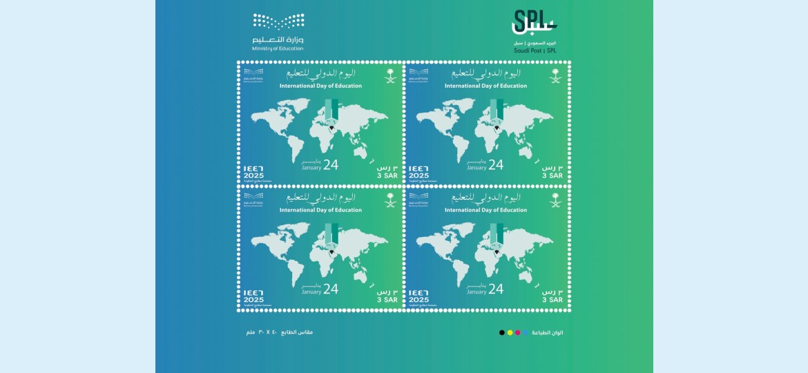 أصدرت مؤسسة البريد السعودي "سبل" بالتعاون مع وزارة التعليم طابعًا تذكاريًا بقيمة (3) ريالات بمناسبة اليوم الدولي للتعليم 2025.