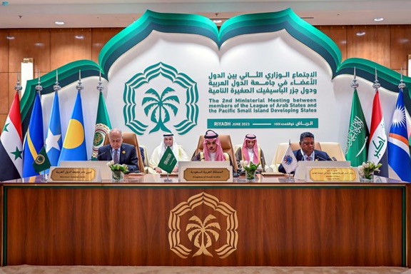 رأس صاحب السمو الأمير فيصل بن فرحان بن عبد الله وزير الخارجية، اليوم، الاجتماع الوزاري الثاني بين الدول الأعضاء في جامعة الدول العربية ودول جزر الباسيفيك الصغيرة النامية، الذي تستضيفه المملكة في العاصمة الرياض.