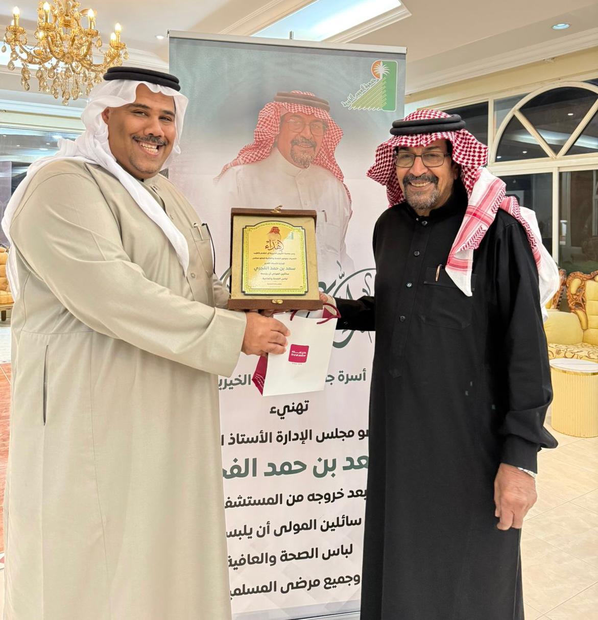 كما كرّم المجلس منسوبي الجمعية السابقين، الأستاذ علي بن محمد السليم والأستاذ نادر بن عواد العواد، وذلك تقديرًا لجهودهم الكبيرة التي بذلوها خلال فترة عملهم في الجمعية، ومساهماتهم الفاعلة في تحقيق أهدافها.