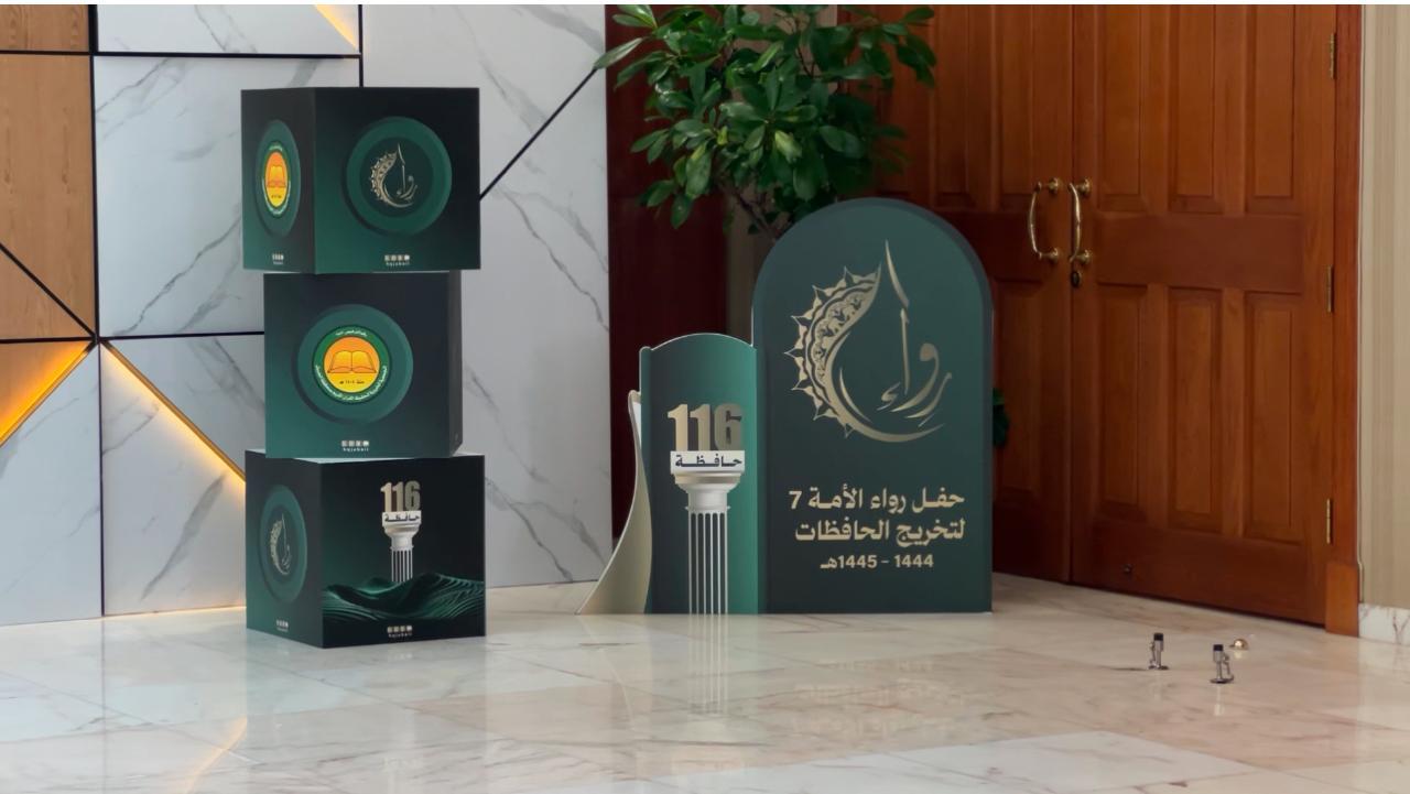 تحت رعاية حرم سمو أمير المنطقة الشرقية صاحبة السمو الأميرة عبير بنت فيصل بن تركي كرمت الجمعية الخيرية لتحفيظ القرآن الكريم في محافظة الجبيل في حفل "رواء الأمة السابع" 116 حافظة للقرآن الكريم من مختلف الأعمار والجنسيات مساء اليوم اﻻربعاء 29 رجب 1446هـ ، وذلك في مركز الملك عبد الله الحضاري بالجبيل الصناعية.
