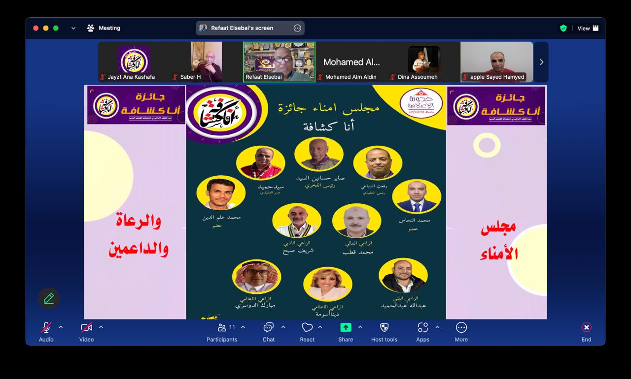 عقد مجلس أمناء جائزة "أنا كشافة" يوم أمس اجتماعه الأول "عبر الاتصال المرئي" بحضور الرئيس الفخري للجائزة، عضو المجلس القائد صابر حسانين السيد، كما حضره الرعاة والداعمين للجائزة.