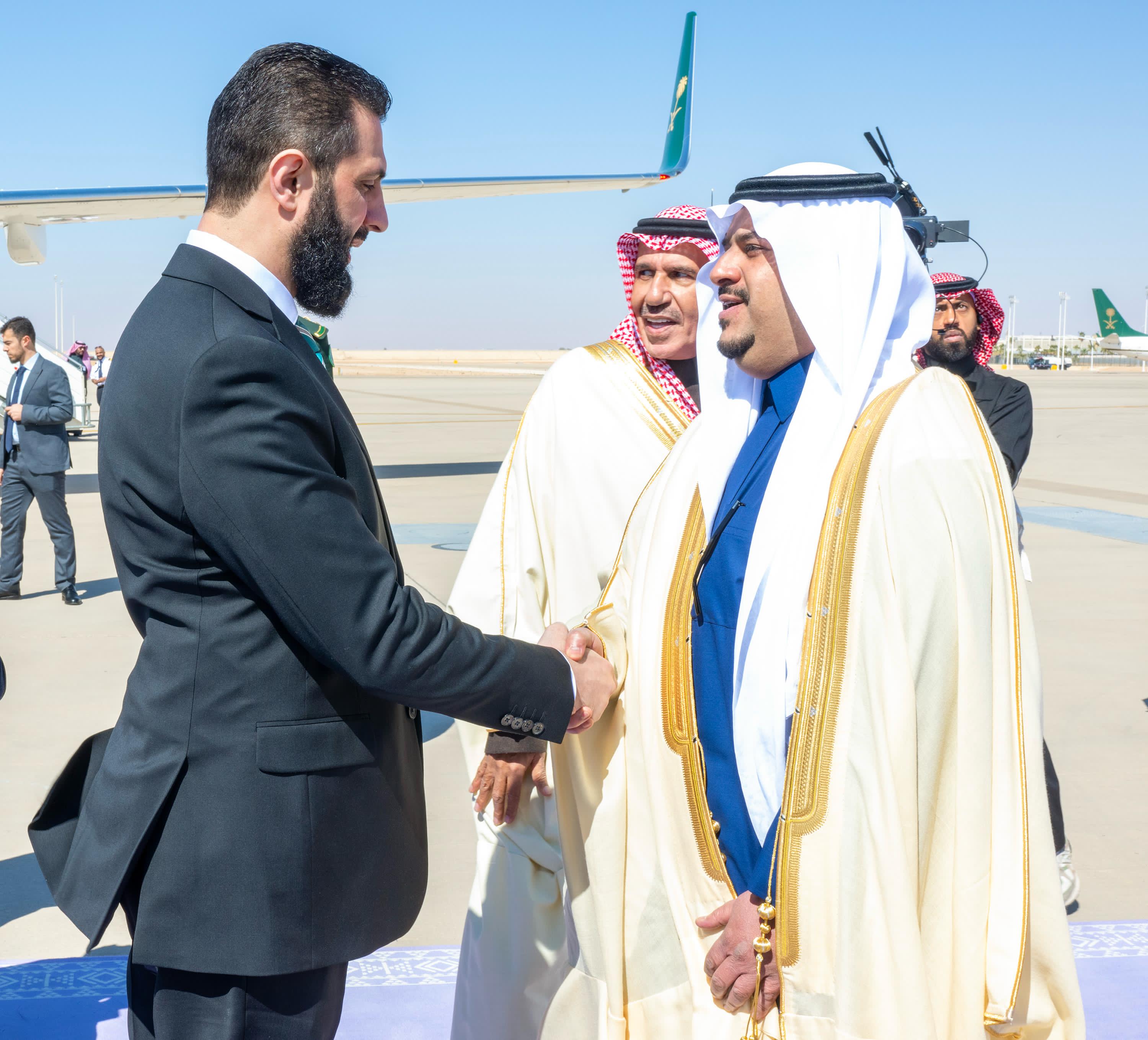 وصل الرياض اليوم، فخامة الرئيس أحمد الشرع رئيس الجمهورية العربية السورية والوفد المرافق.
