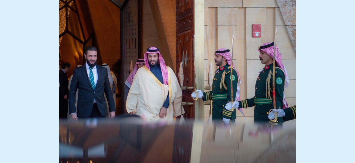 وفي بداية الاستقبال عبر سمو ولي العهد عن التهنئة لفخامته بمناسبة توليه رئاسة الجمهورية العربية السورية، متمنياً له التوفيق والسداد في تحقيق آمال وطموحات الشعب السوري الشقيق.