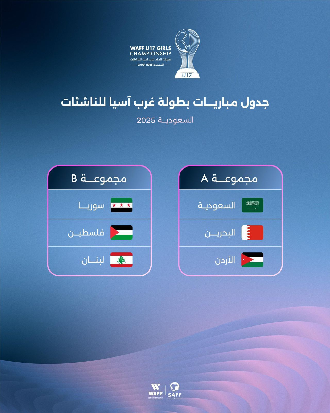 جاء  المنتخب السعودي  في المجموعة الأولى بجوار منتخبات البحرين والأردن في  بطولة غرب آسيا للناشئات  تحت 17 عاماً والتي تستضيفها المملكة العربية السعودية، خلال الفترة من 8 إلى 16 من شهر فبراير الحالي في مدينة الخبر.