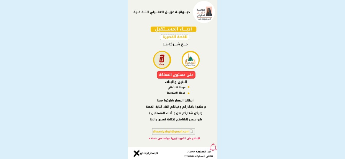 على مستوى المملكة للمرحله الابتدائية والمتوسطة للبنين والبنات ( للقصه القصيرة )
