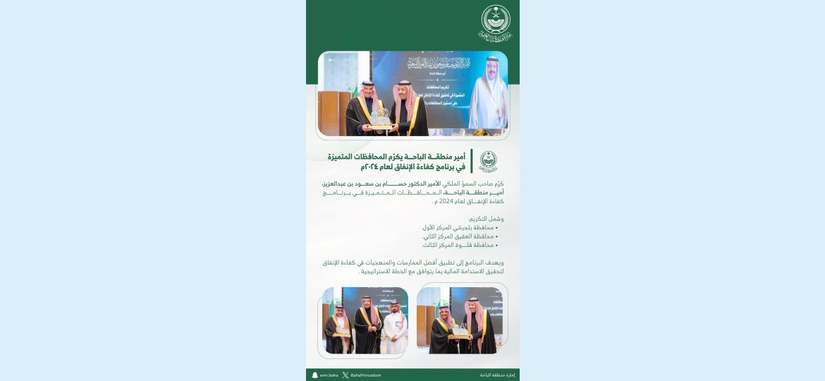يأتي هذا التكريم في إطار جهود إمارة منطقة الباحة لدعم وتحفيز الجهات الحكومية على تحقيق أعلى معايير الجودة والإدارة المالية الرشيدة