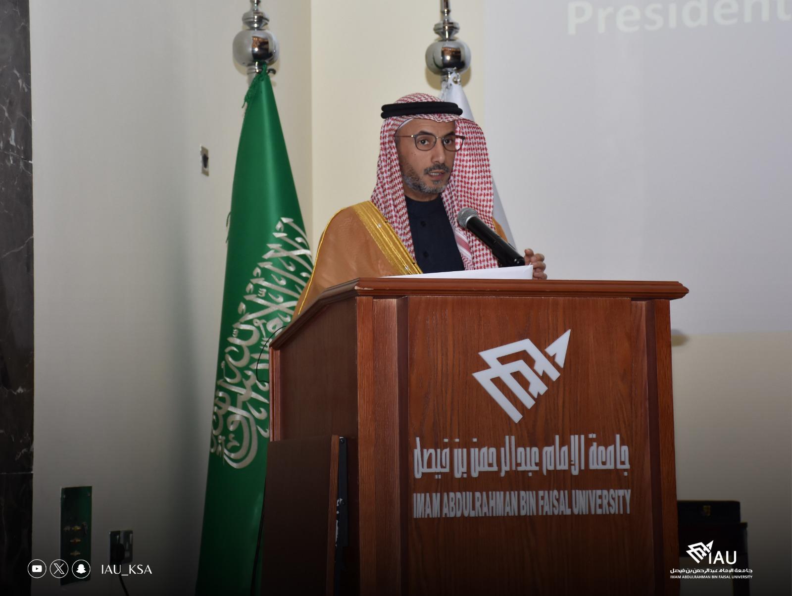 وذكر الدكتور الحربي تسير جامعة الإمام عبدالرحمن بن فيصل بخطى متوائمة في النهج والمستهدفات، تعتز بمخرجات منظومتيها التعليمية والطبية، مدركة حجم الإسهام المأمول منها ضمن مشاريع تطوير قطاع الصحة بالمملكة وذلك في ظل مسارها الصحي الذي يحتل ٣٥٪؜ من جملة كلياتها الأكاديمية، وفي ظل قيادتها لعدد من المستشفيات الجامعية تحت مظلة مدينتها الطبية الأكاديمية بالجامعة، فضلاً عن مراكزها البحثية الطبية وإنجازاها المتنامي في مجالي البحث والابتكار الطبي، والشكر في هذا لله أولاً ، ثم لقيادتنا الرشيدة الداعمة الممكنة أيدها الله، فكان عظيم العناية والاهتمام دافع للوصول إلى المكانة والسمعة التي تحتلها الجامعة، وصور الإنجاز ومؤشراته التي نشهد تحقيقها على مختلف المستويات.
