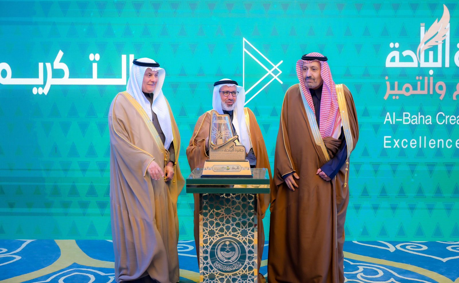 كرّم صاحب السمو الملكي الأمير الدكتور حسام بن سعود بن عبدالعزيز أمير منطقة الباحة رئيس مجلس إدارة جائزة الباحة للإبداع والتميز، بقاعة الاستقبالات الكبرى بديوان الإمارة اليوم، الفائزين والفائزات بجائزة الباحة للإبداع والتميز في دورتها العاشرة لهذا العام 1446هـ ، بحضور ضيف شرف الجائزة معالي وزير البيئة والمياه والزراعة المهندس عبد الرحمن بن عبدالمحسن الفضلي .